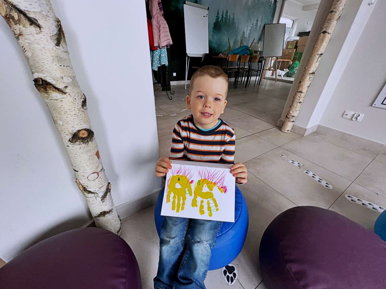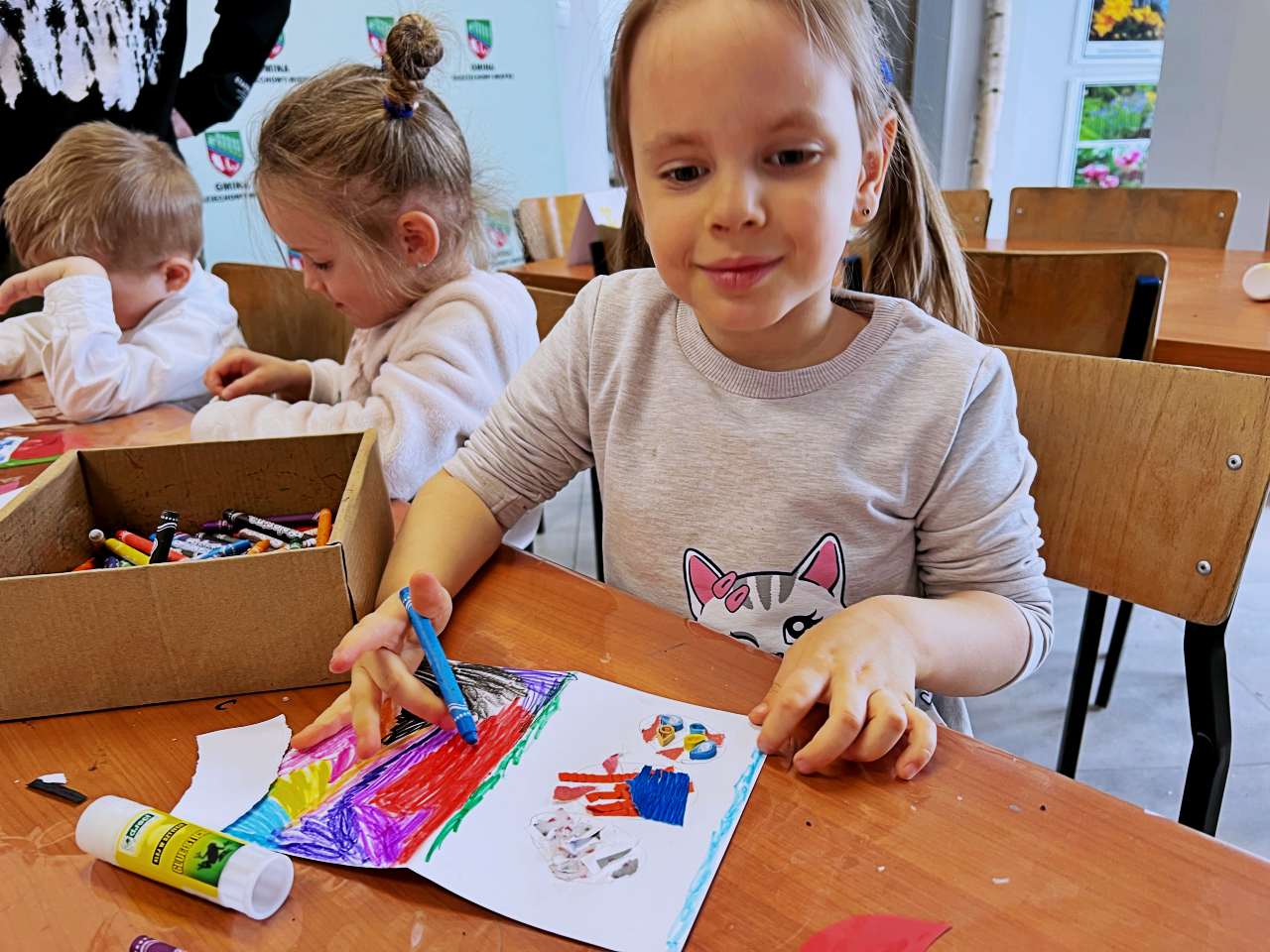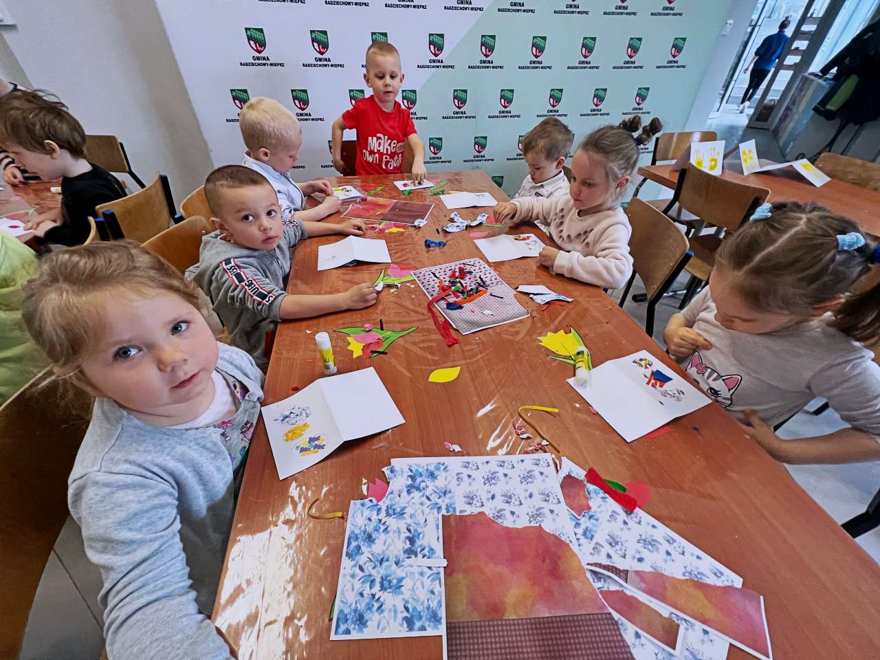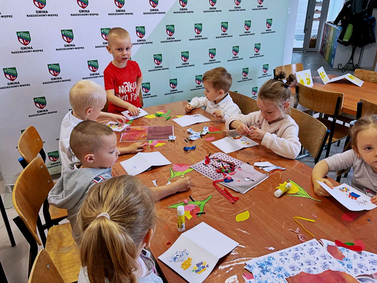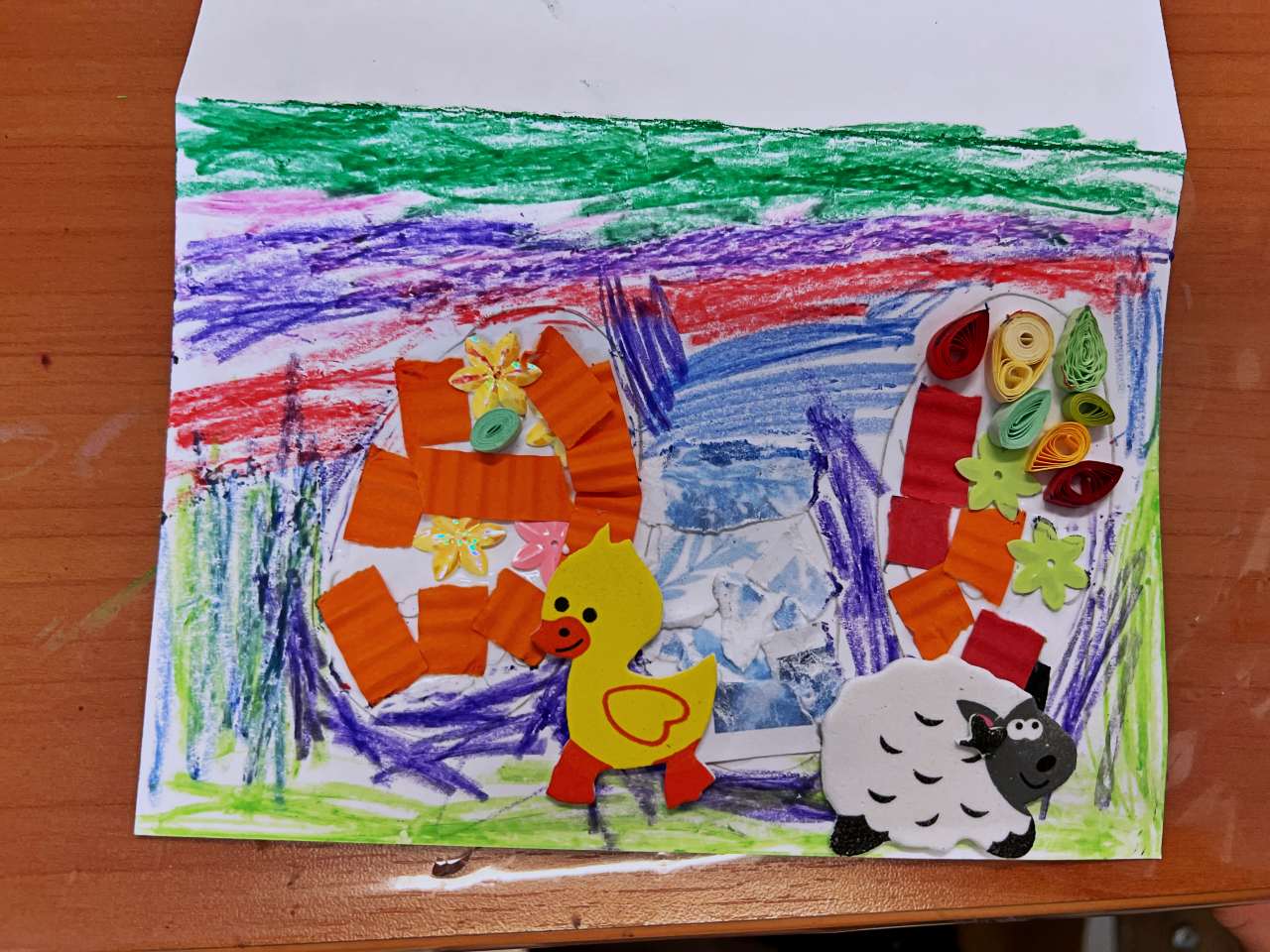 Wraz z grupą przedszkolaków z Przedszkola Publicznego w Wieprzu stworzyliśmy piękne kartki technika kolażu. Do wykonania kartek użyliśmy bibuły, starych gazet, kredek i własnych paluszków. W trakcie zajęć poznawaliśmy ptaki z zagrody naszych dziadków: gęsi, kury, indyki, perliczki i kaczki.