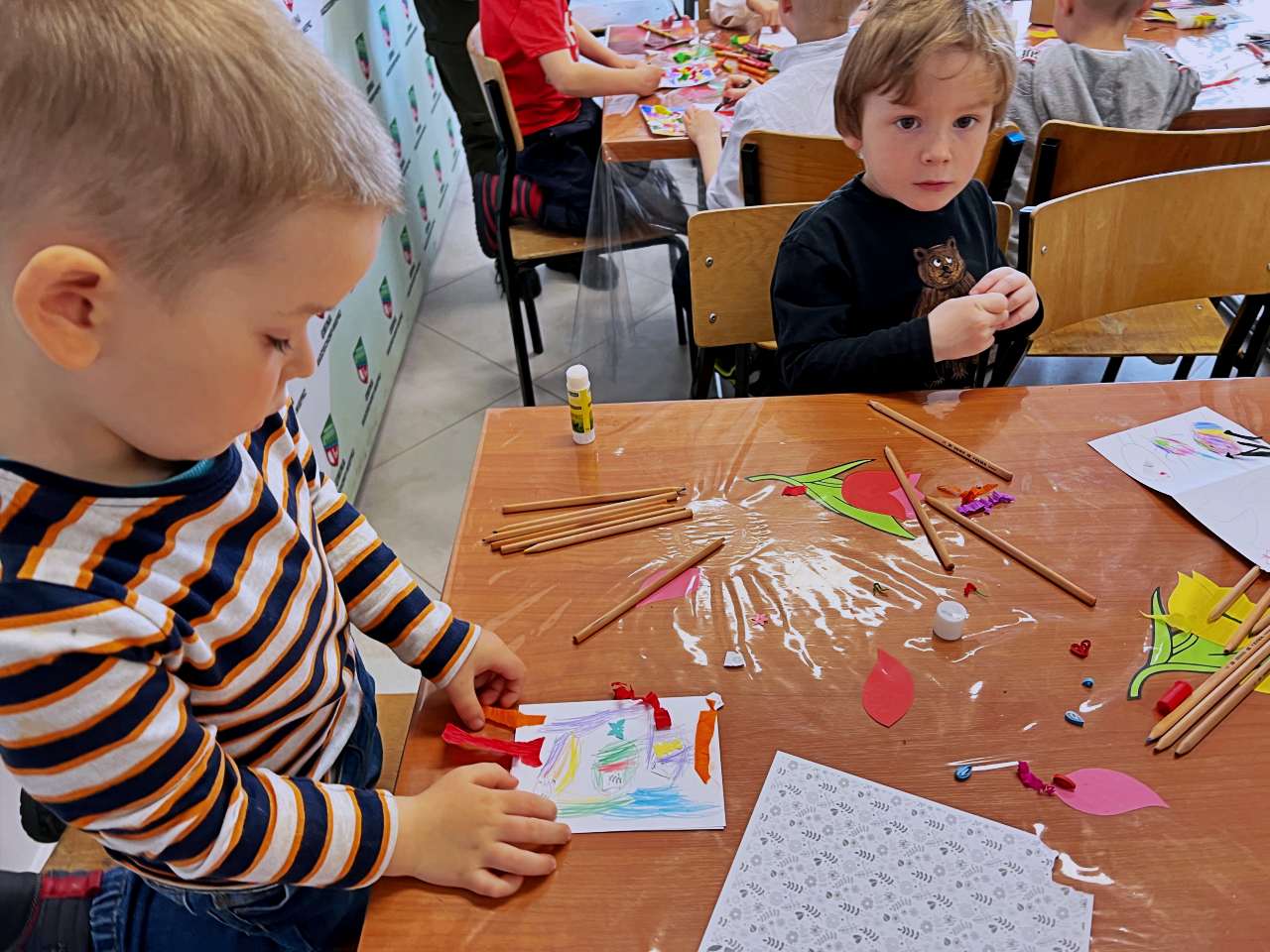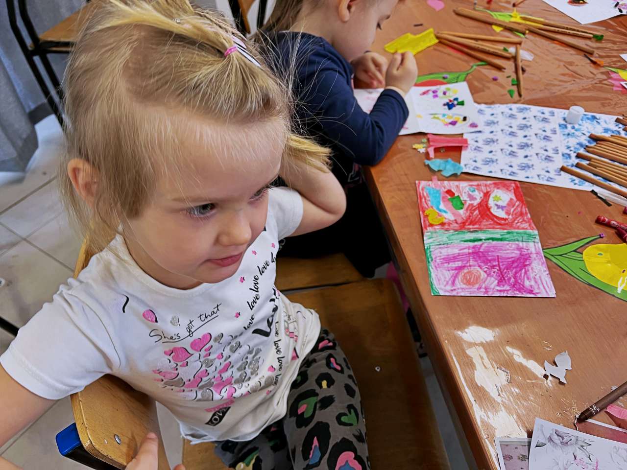 Dzieci wykonały przepiękne kartki wielkanocne dla najbliższych. Jesteśmy pod wielkim wrażeniem talentów i wyobraźni.