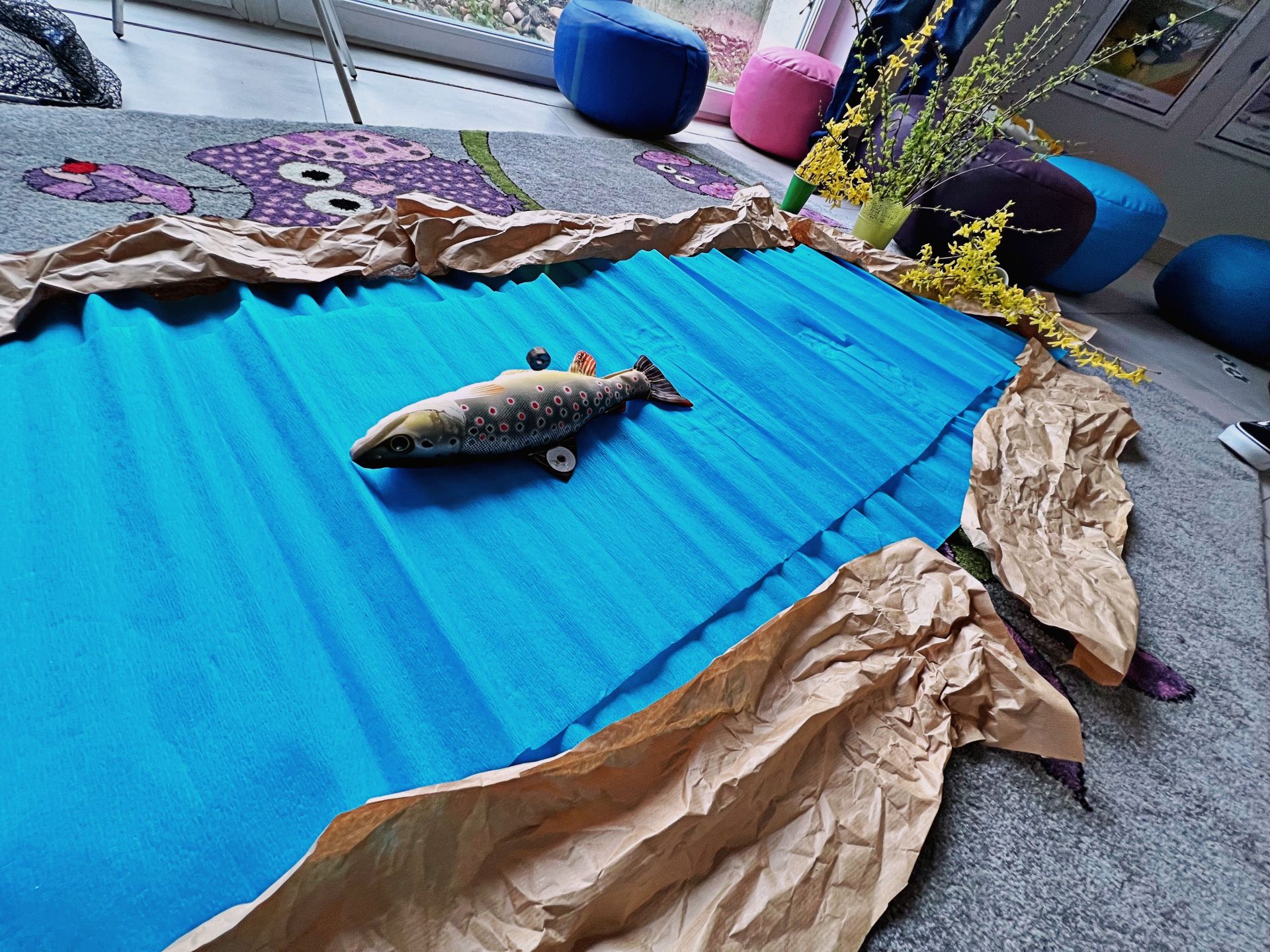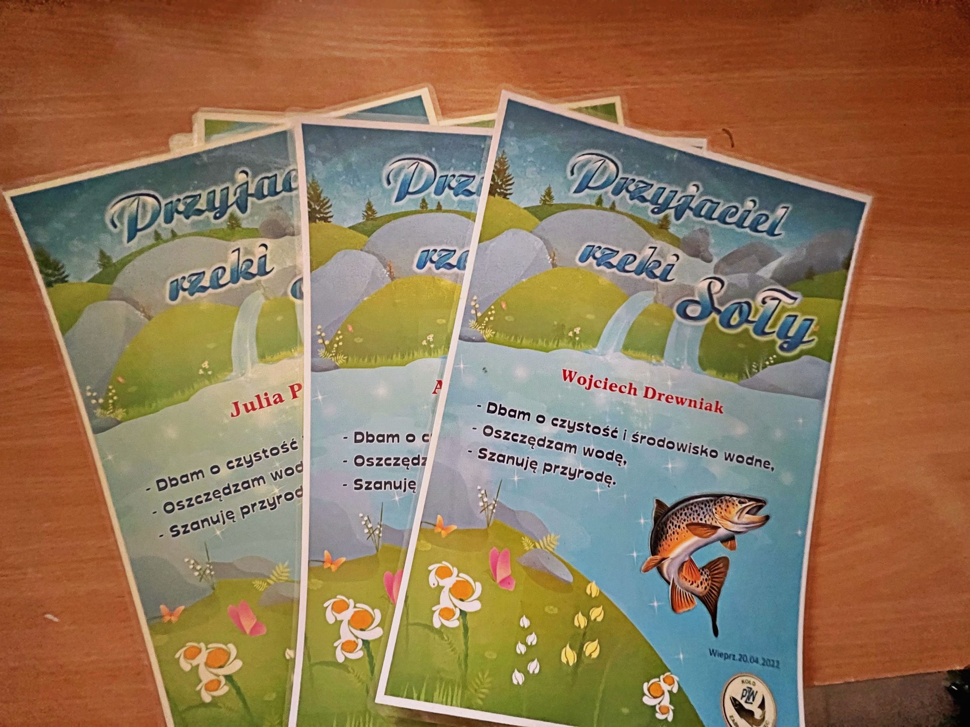W warsztatach wzięły udział dzieci z przedszkola w Wieprzu, które podczas prezentacji miały okazje poznać środowisko wód lądowych a w szczególności rzek górskich przepływających przez nasz region. Zapoznaliśmy dzieciaki jak dbać o środowisko naturalne a w szczególności środowisko wodne, jego różnorodność, bogactwo i piękno. Nasi najmłodsi uczestniczyli w pokazie na którym poznały pojęcie recyklingu, segregowania odpadów, które wytwarza człowiek. Przedszkolaki zaczerpnęły także wiedzę na temat wędkarstwa, a najbardziej cieszyły się z łowienia pluszowej ryby, pstrąga potokowego, którego później malowały na przygotowanych przez nas kolorowankach. Na koniec dzieci otrzymały dyplomy ,,Przyjaciel rzeki Soły,, oraz poczęstowały się wspaniałymi drożdżówkami i soczkami owocowymi. Mamy nadzieję, że dzieci były zadowolone z przeprowadzonych warsztatów i cieszymy się, że zaszczepiliśmy w nich nie tylko wartości proekologiczne ale także nutkę sportu wędkarskiego.