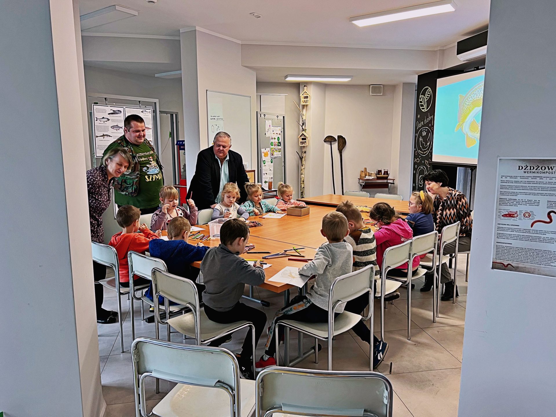 Dzisiaj, zorganizowaliśmy warsztaty ekologiczno – wędkarskie w Centrum Edukacji Ekologicznej w Wieprzu.