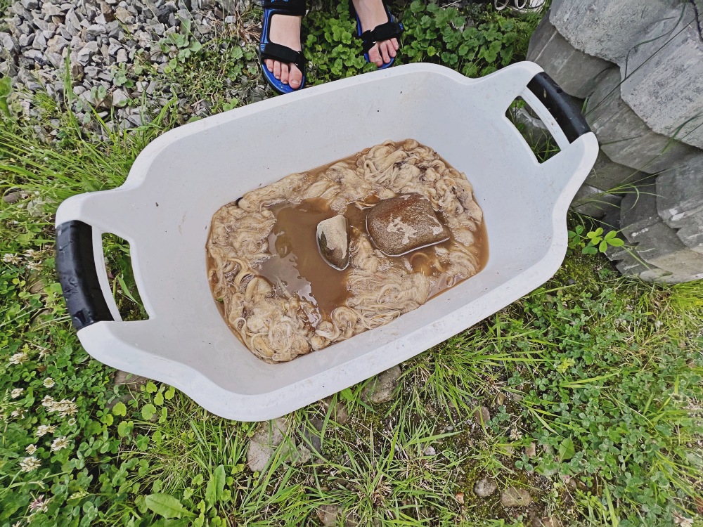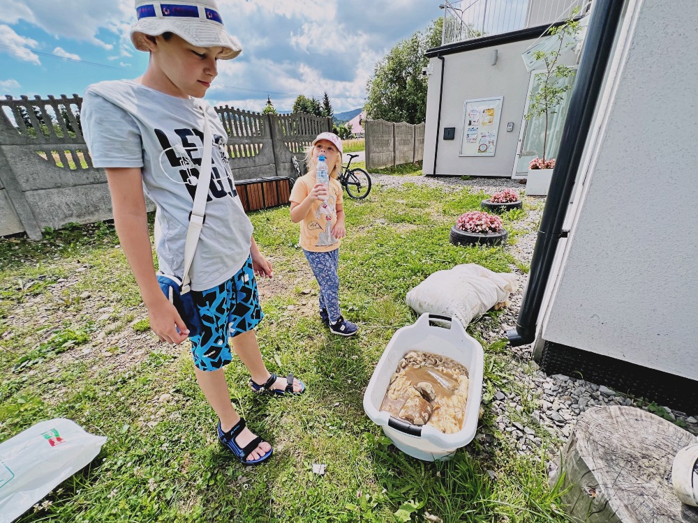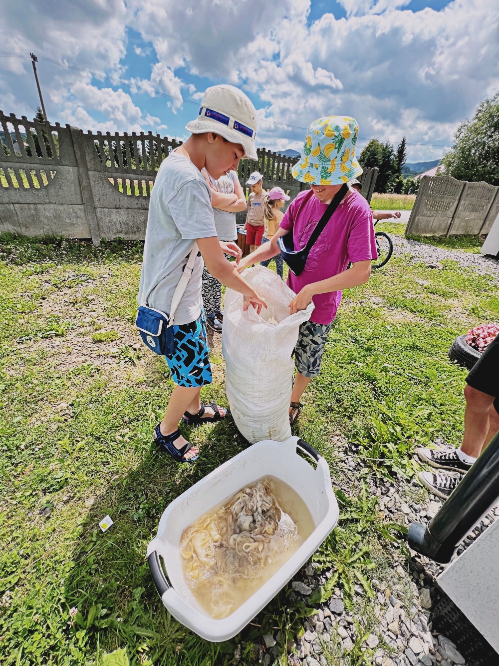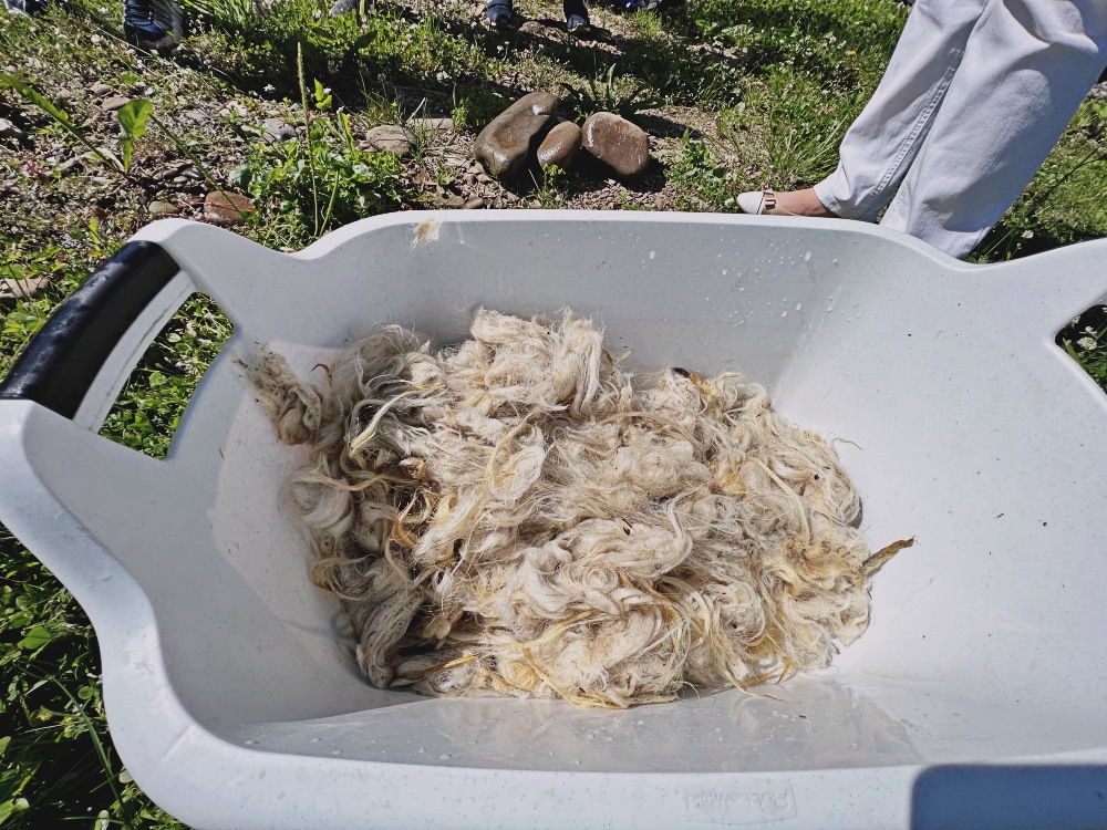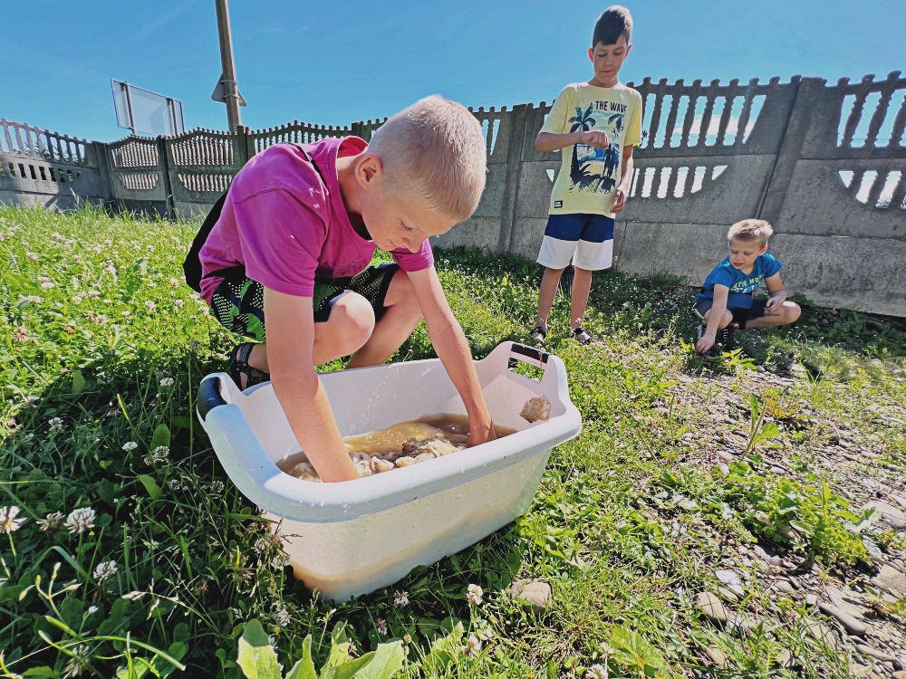 Podczas zajęć uczyliśmy się prać wełnę, co sprawiło dzieciakom wiele radości i doznań w szczególności zapachowych. Wełna to specyficzne „tworzywo”, które po ścięciu bywa nieco problematyczne. Pranie wełny okazało się być ciekawym zajęciam i mimo wszystko bardzo przyjemnym.