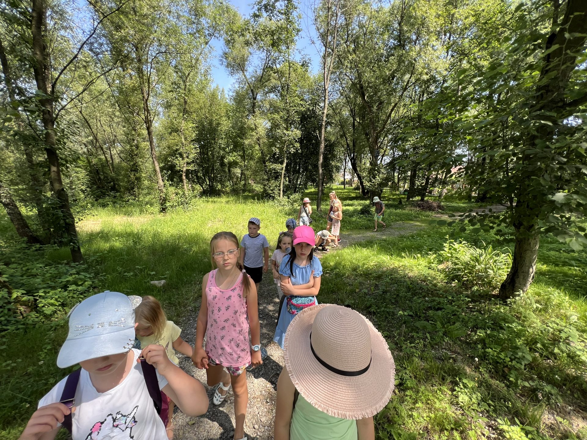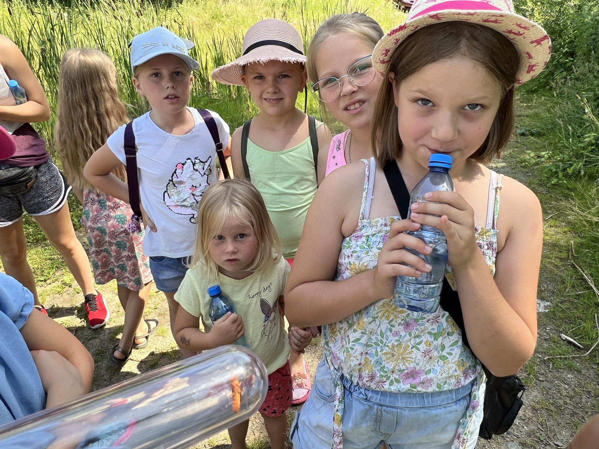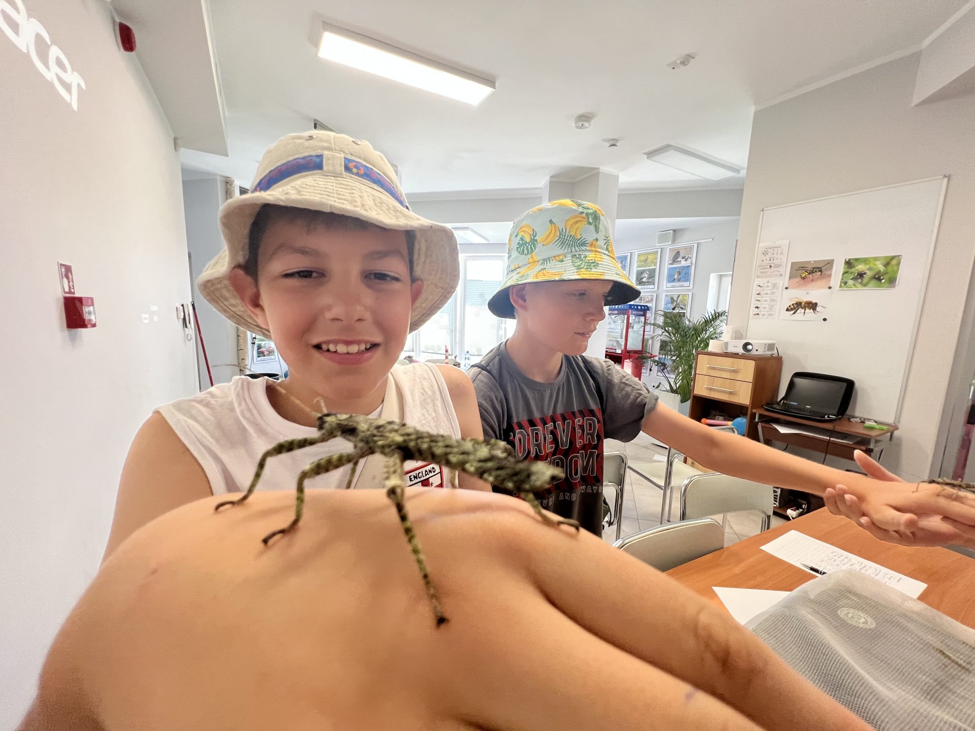 Zajęcia podzielone były na dwa bloki. Najpierw teoria, czyli to czym różni się pajęczak od owada a następnie poznanie kilku najczęściej spotykane owady. Zwróciliśmy uwagę na zapylacze, które wykazują w tym okresie największą aktywność. Następnie wyszliśmy w teren a dokładnie na Łęgi. Oczywiście pamiętaliśmy o wodzie i nakryciu głowy.
