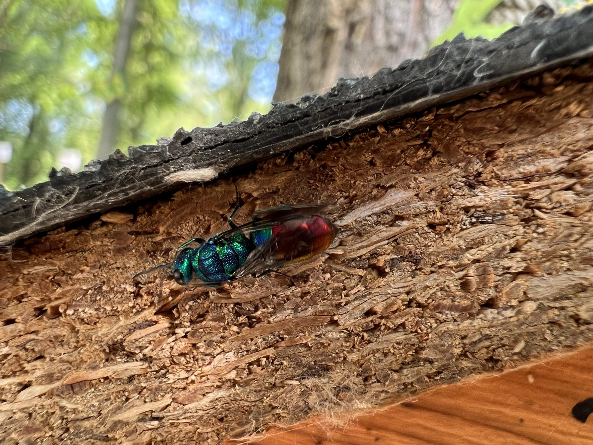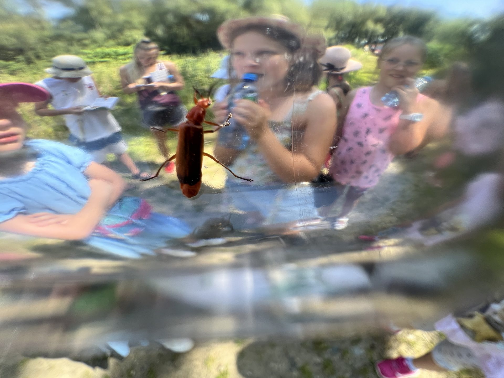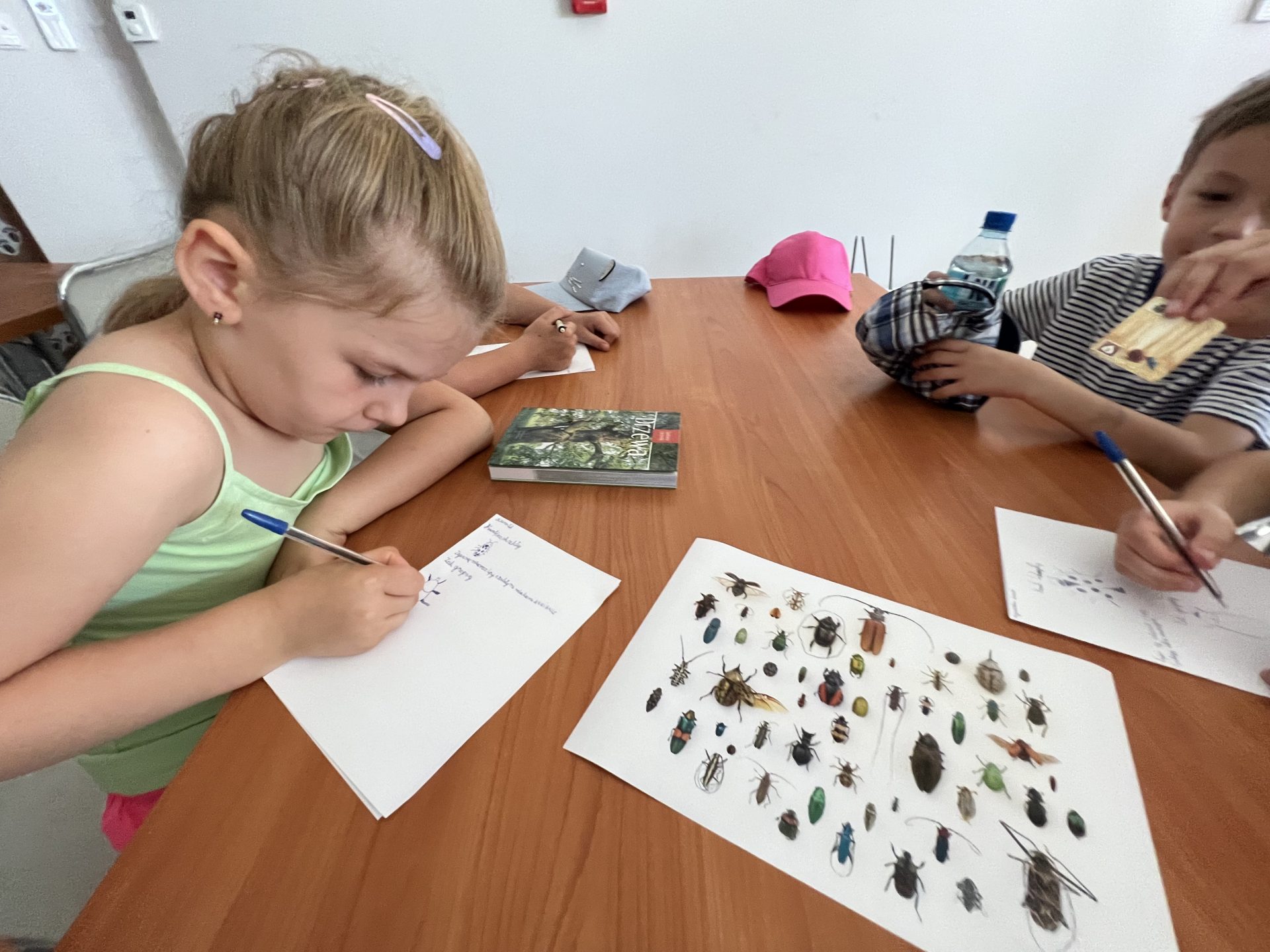 Zajęcia podzielone były na dwa bloki. Najpierw teoria, czyli to czym różni się pajęczak od owada a następnie poznanie kilku najczęściej spotykane owady. Zwróciliśmy uwagę na zapylacze, które wykazują w tym okresie największą aktywność. Następnie wyszliśmy w teren a dokładnie na Łęgi. Oczywiście pamiętaliśmy o wodzie i nakryciu głowy.