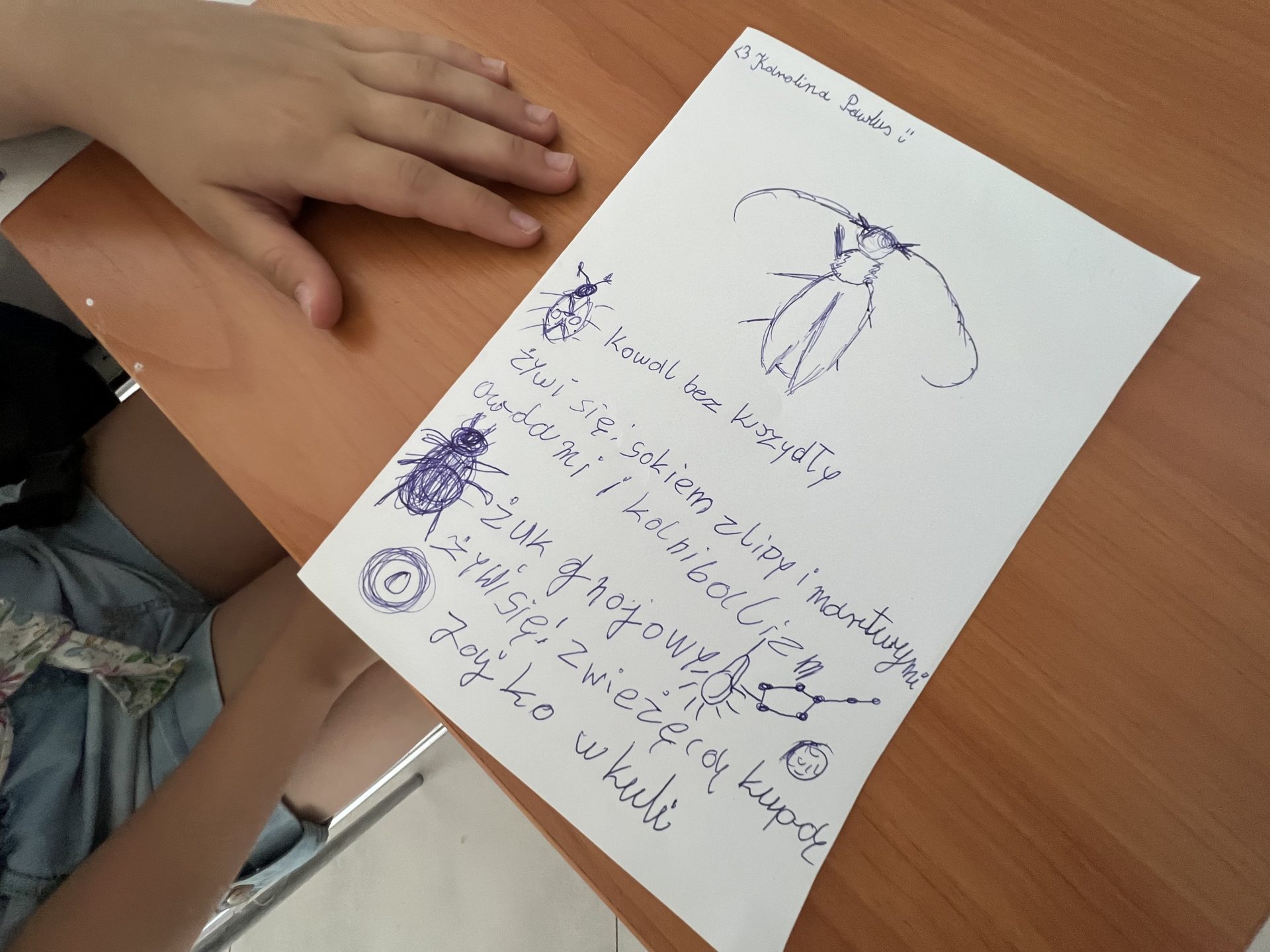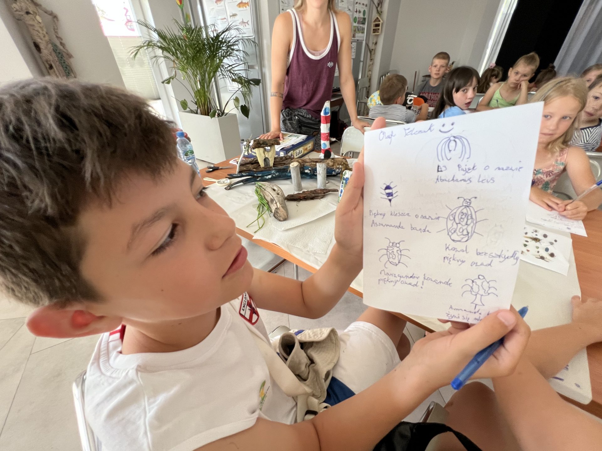 Na końcu każdy z uczestników mógł stworzyć swojego niesamowitego owada z super mocami. Powstały piękne prace z dokładnymi opisami. Jak najlepiej się uczyć i poznawać świat? – przez zabawę!