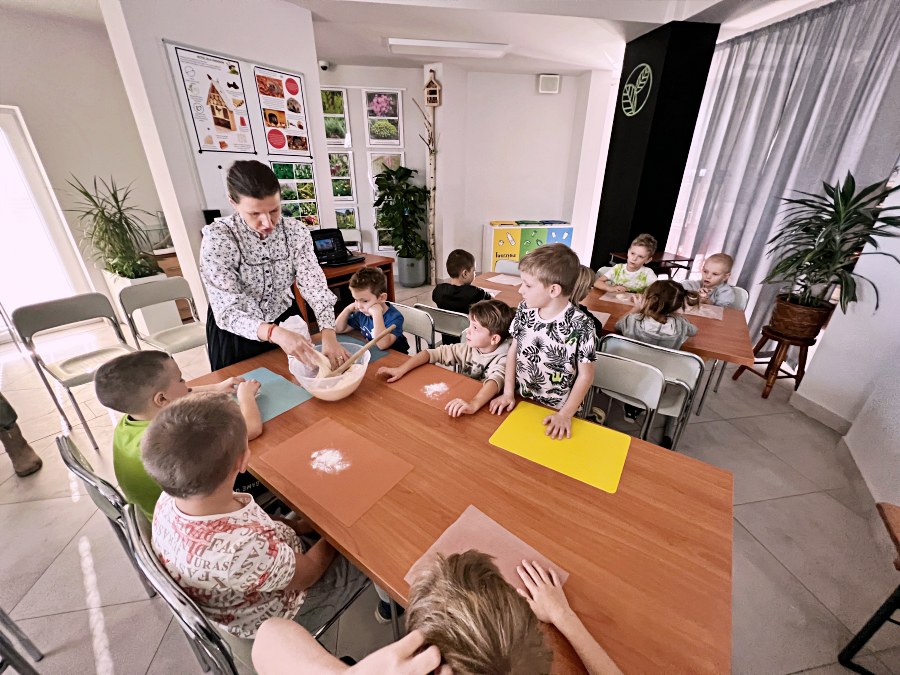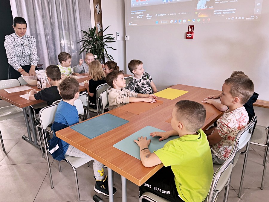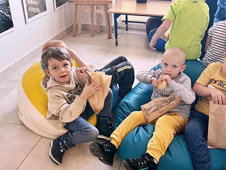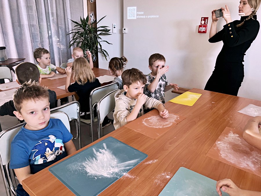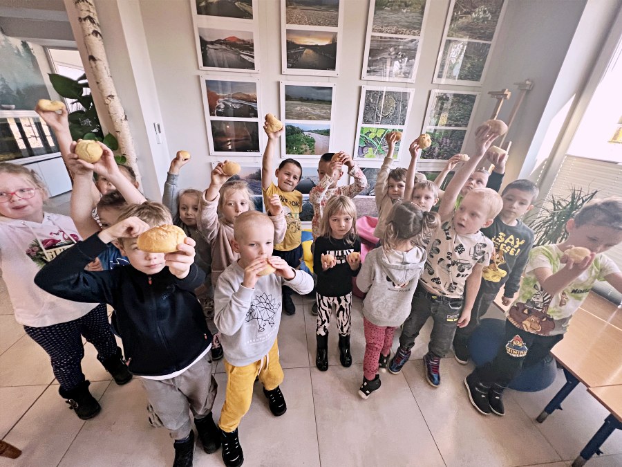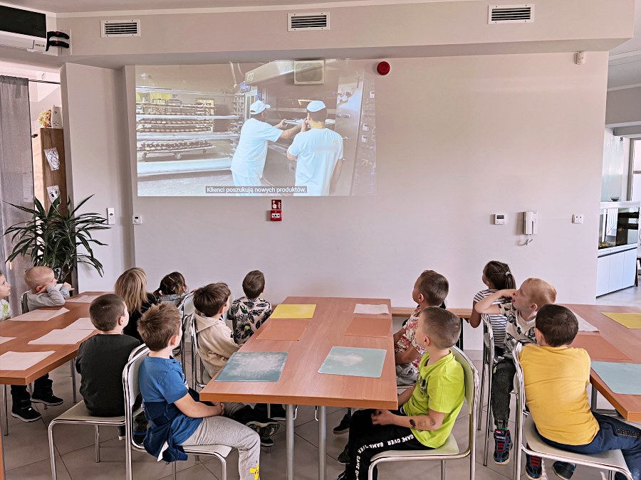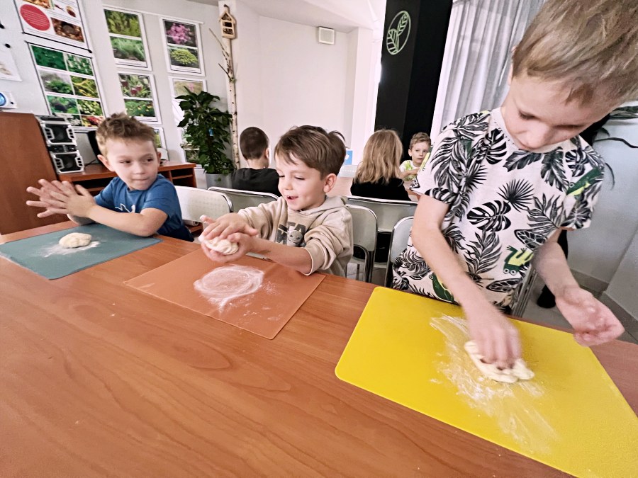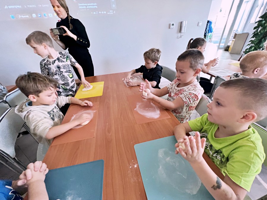 Pieczemy bułeczki z podopiecznymi Przedszkola z Bystrej. Oj wyszły smaczne. Każdy miał okazję uformować swój wyjątkowy kształt bułki. Do tego poznaliśmy zawód piekarza. Zobaczyliśmy jak wyglądała piekarnia tradycyjna i jak wygląda nowoczesna. Dzieci najedzone i szczęśliwe.