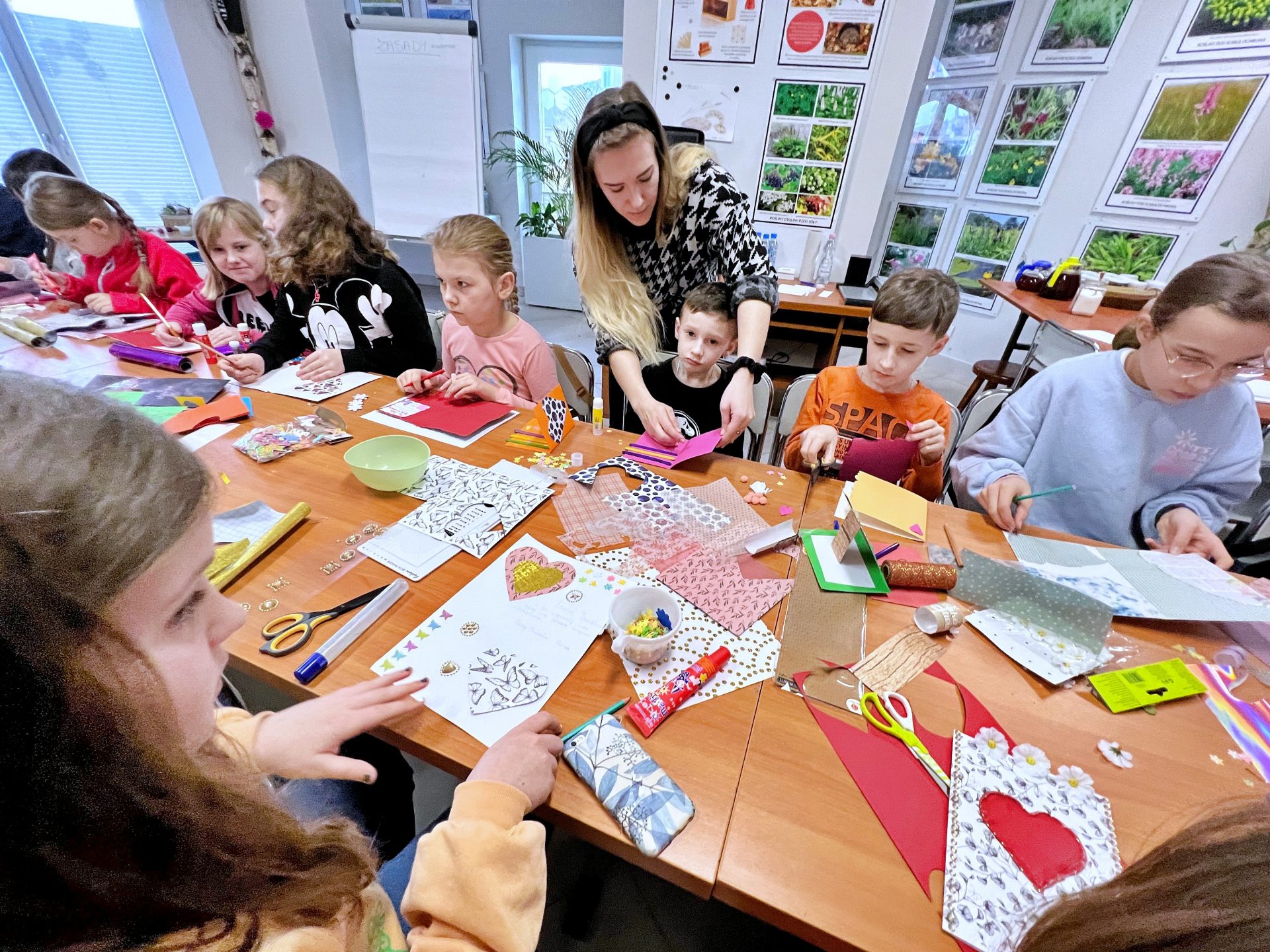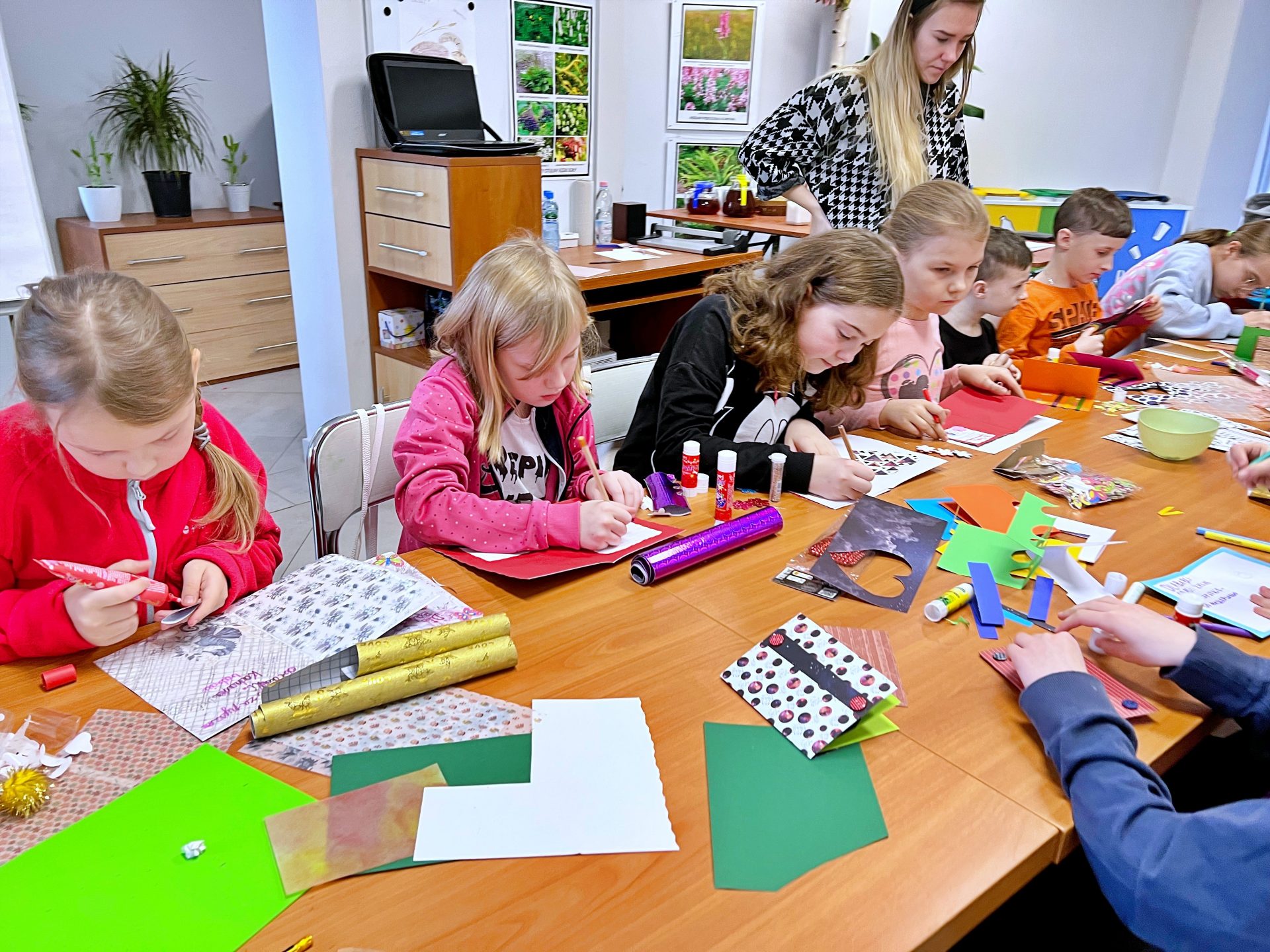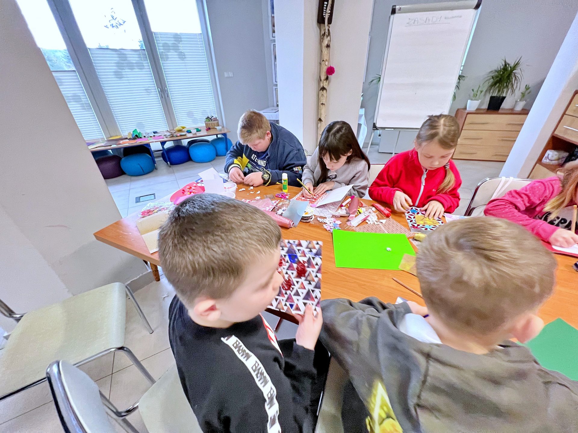 Za nami pierwszy dzień ferii 2023. Zrobiliśmy już kolorowe kartki dla Babci i Dziadka a nawet kartki i pocztówki na Wielkanoc. Wykorzystaliśmy wszystkie możliwe kartki i kolorowanki. Kreatywnie spędziliśmy 3 godziny zajęć i nie wyszliśmy z pustymi rękami. Każdy zabrał do domu choć 2 kartki. Oczywiście w przerwie nie zabrakło popcornu i dobrej zabawy. Przed nami jeszcze wiele atrakcji.