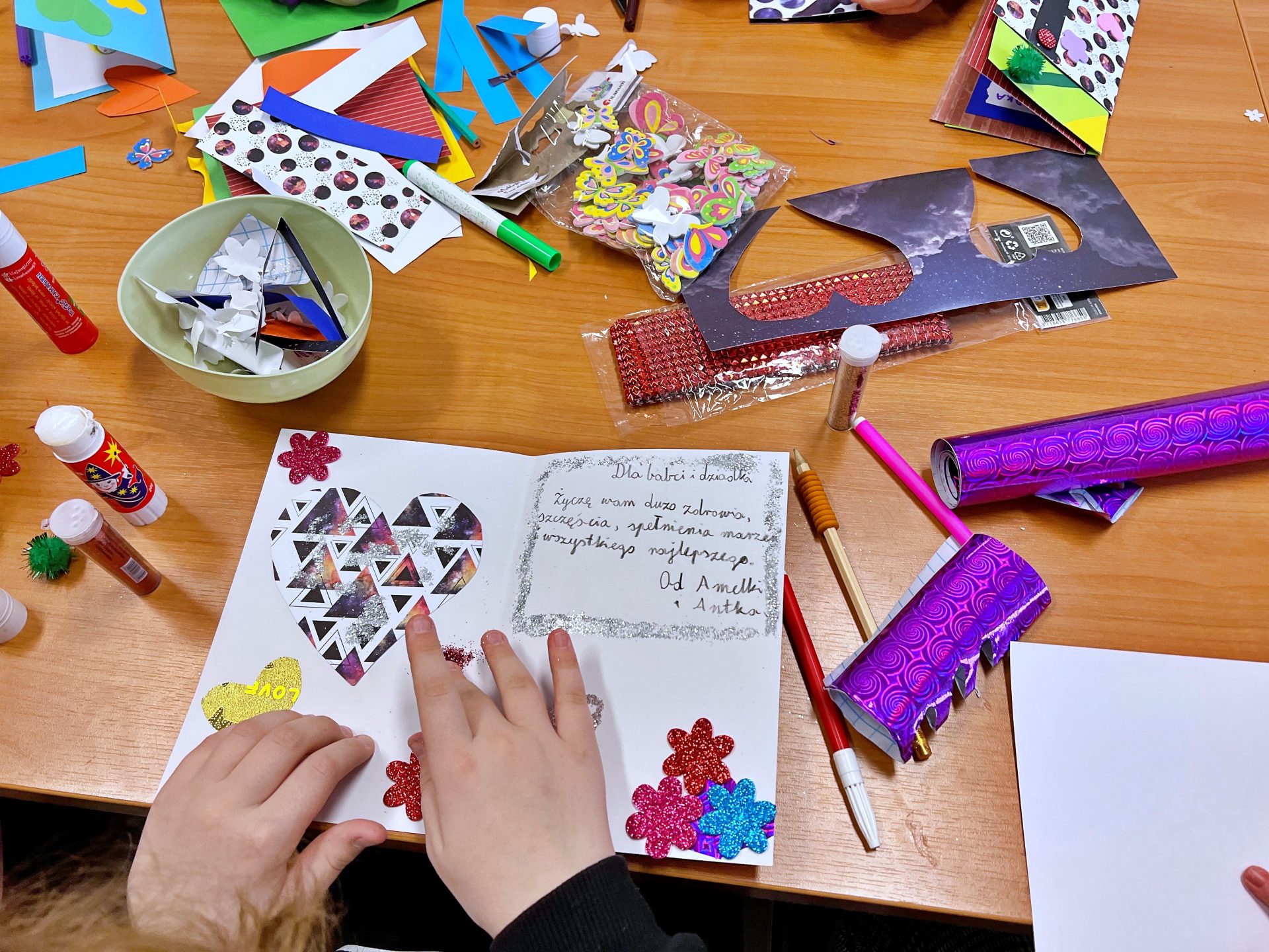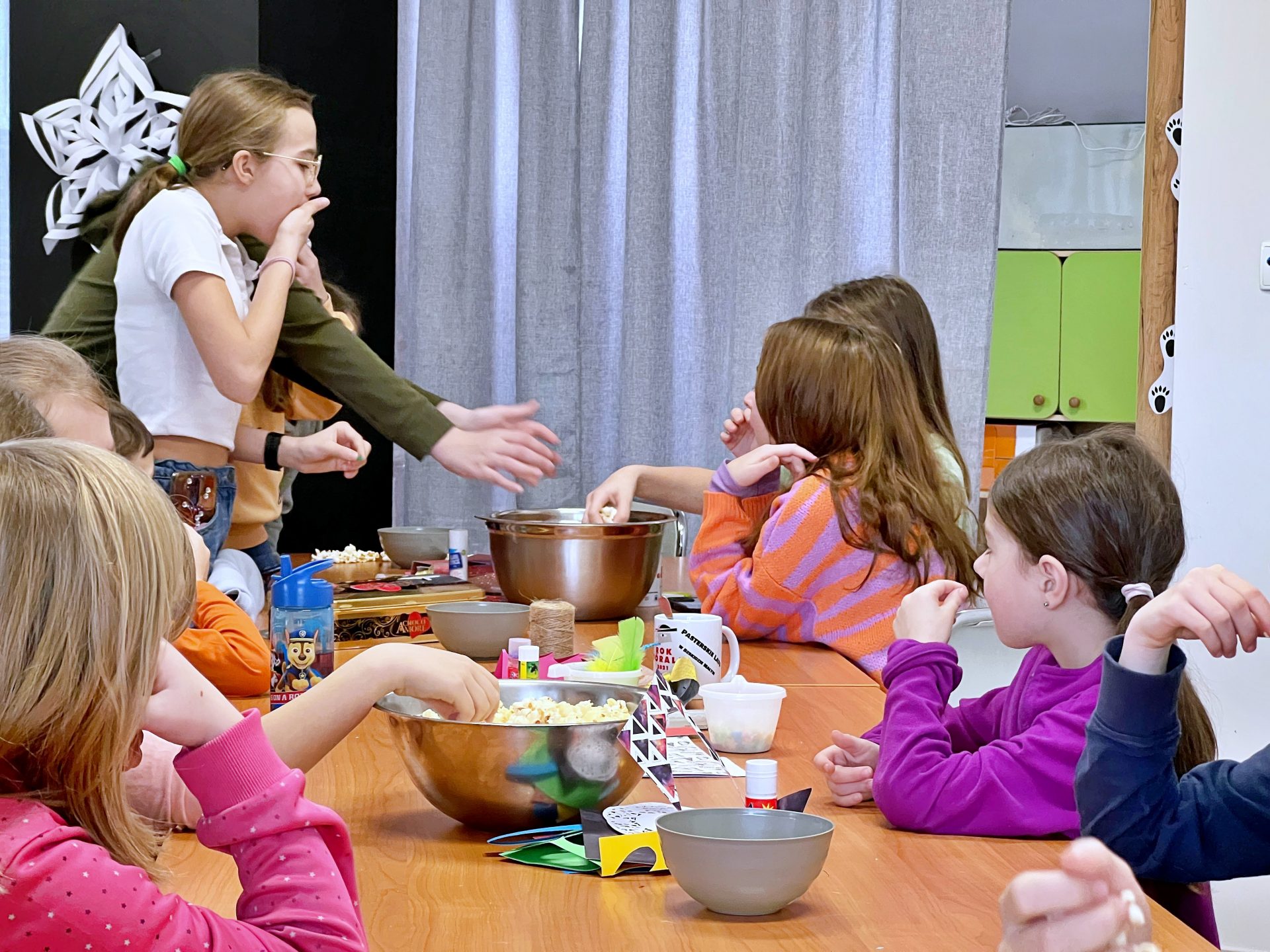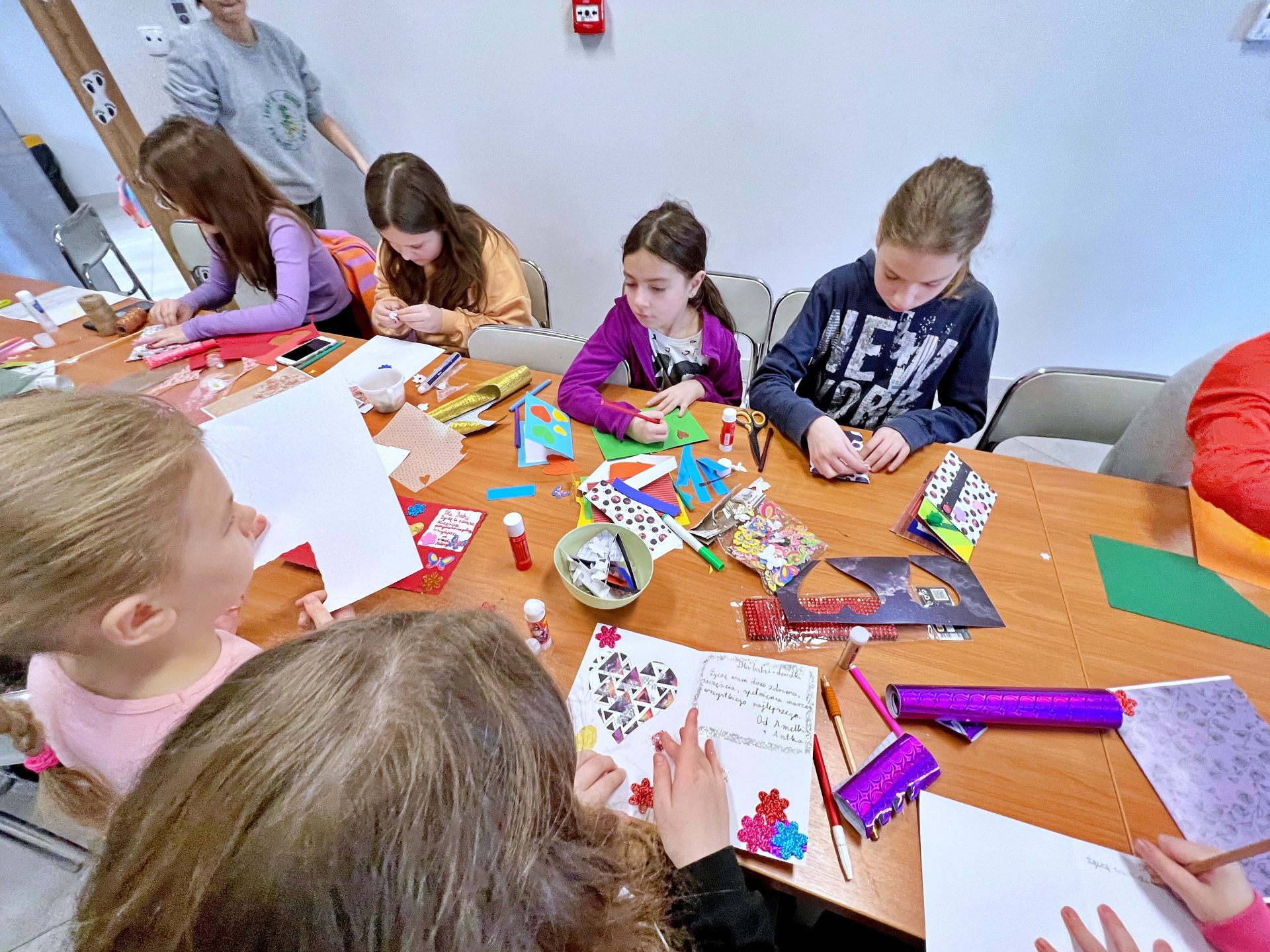 Za nami pierwszy dzień ferii 2023. Zrobiliśmy już kolorowe kartki dla Babci i Dziadka a nawet kartki i pocztówki na Wielkanoc. Wykorzystaliśmy wszystkie możliwe kartki i kolorowanki. Kreatywnie spędziliśmy 3 godziny zajęć i nie wyszliśmy z pustymi rękami. Każdy zabrał do domu choć 2 kartki. Oczywiście w przerwie nie zabrakło popcornu i dobrej zabawy. Przed nami jeszcze wiele atrakcji.