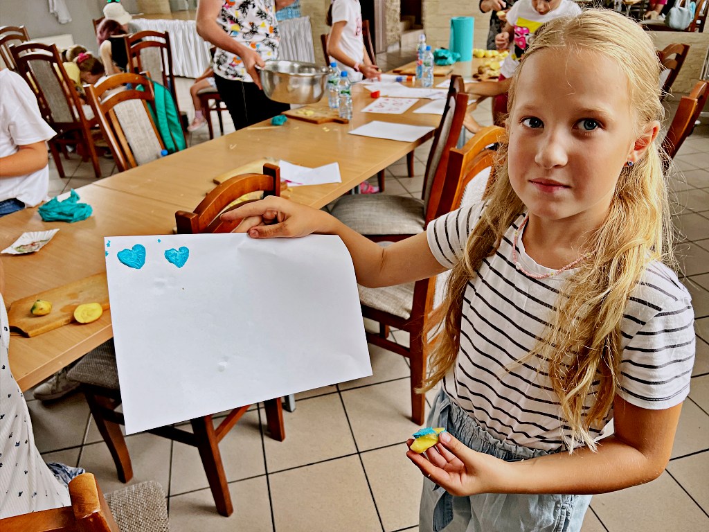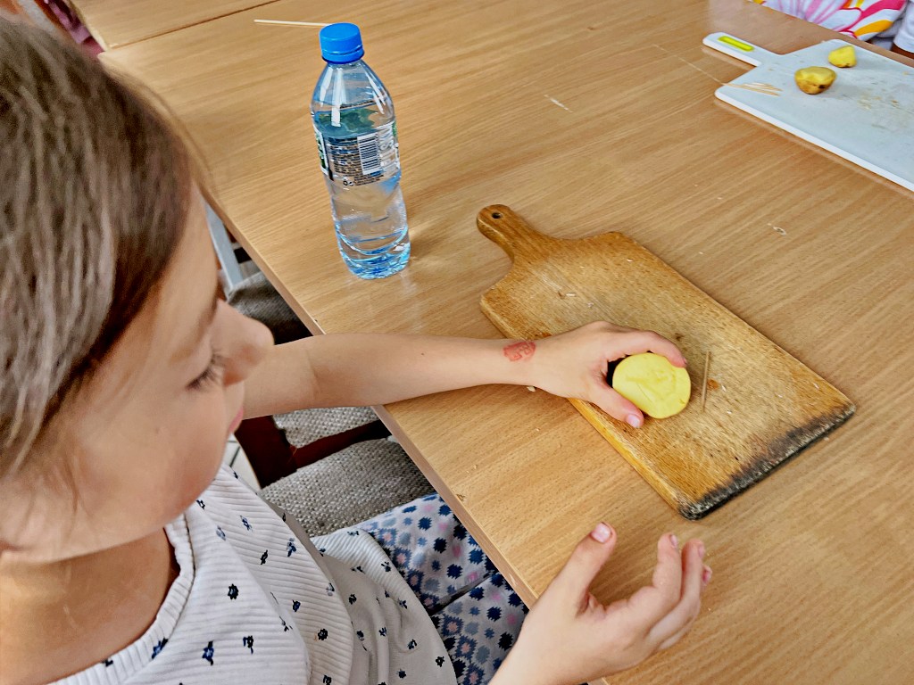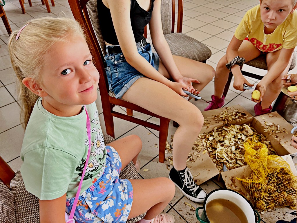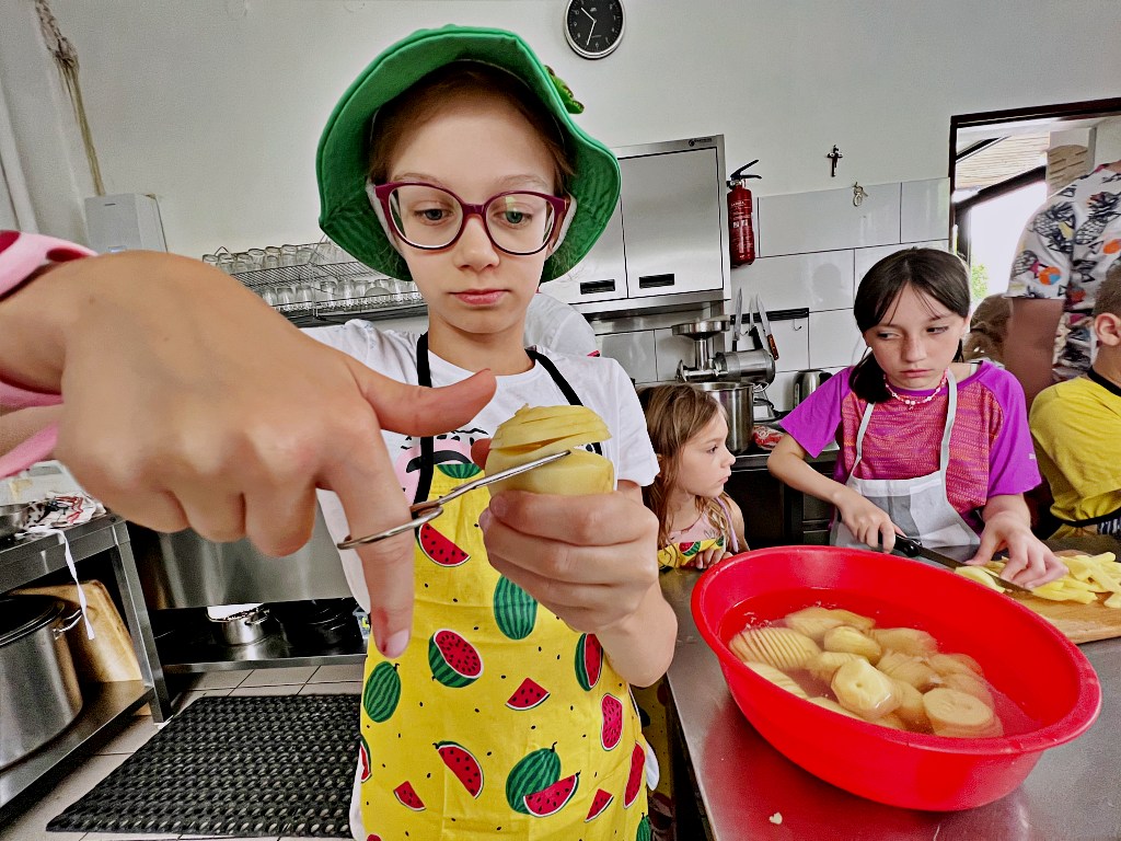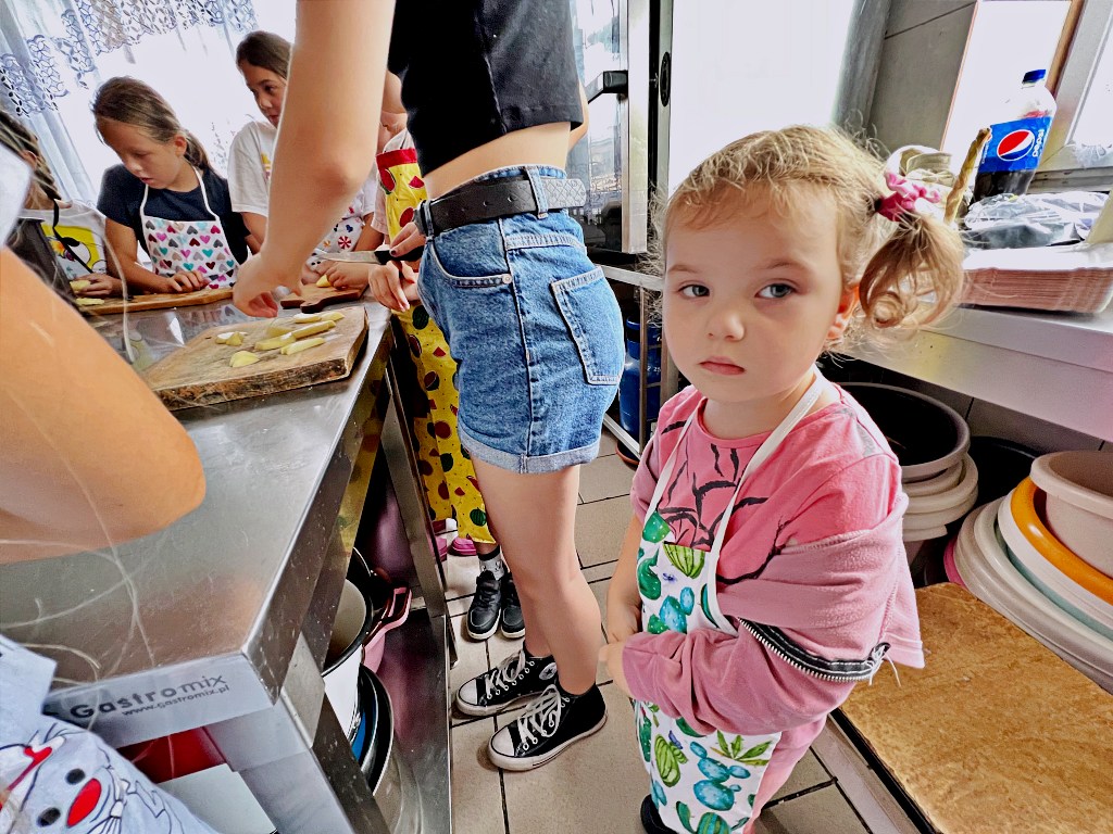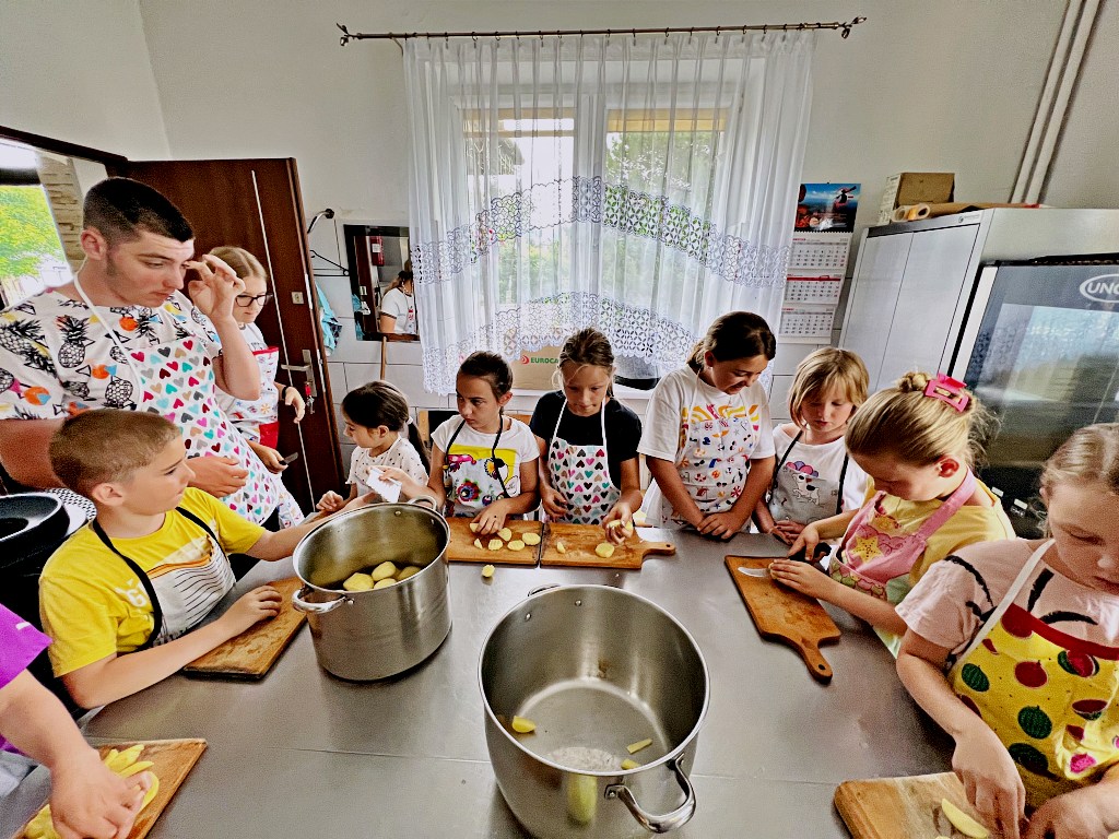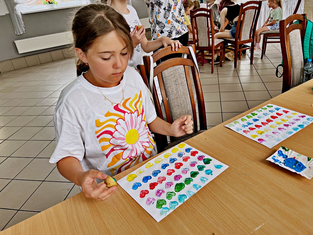 Na zajęciach wakacyjnych w CEE zaczęliśmy od obierania ziemniaków. Następnie przeszliśmy do kuchni udostępnionej przez KGW z WIeprza Panią Janinę Kłusak, gdzie odbyły się warsztaty kulinarne. Każdy mógł wziąć udział w przygotowywaniu różnych potraw z ziemniaka. W menu znalazły się frytki, placki ziemniaczane i wiele innych smakowitych przysmaków. Dzięki wspólnemu gotowaniu zyskaliśmy nowe umiejętności kulinarne i okazję do podzielenia się swoimi ulubionymi przepisami z ziemniakami.