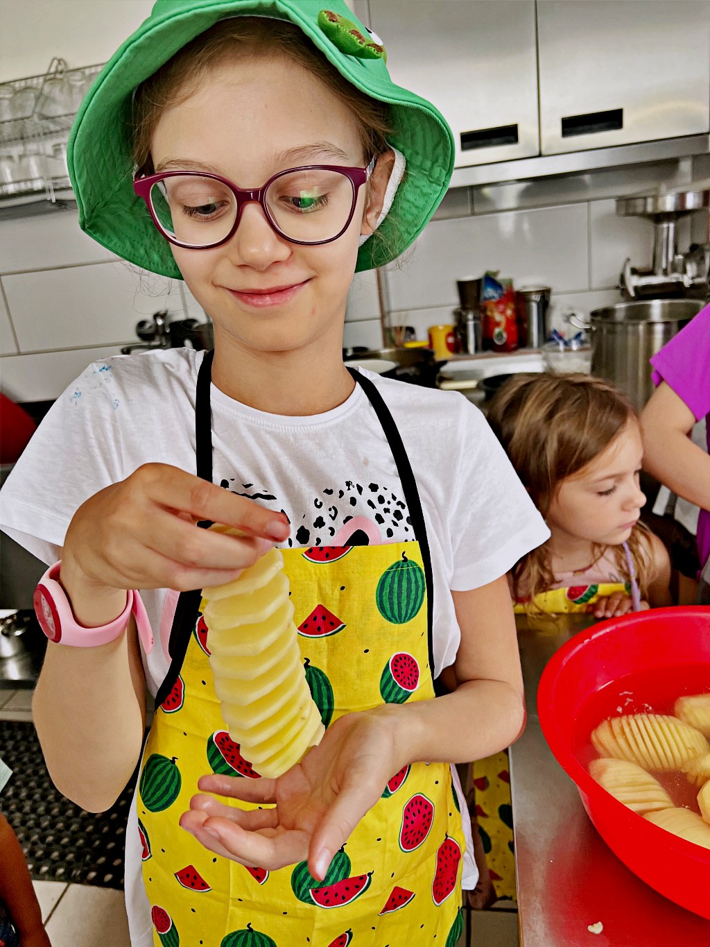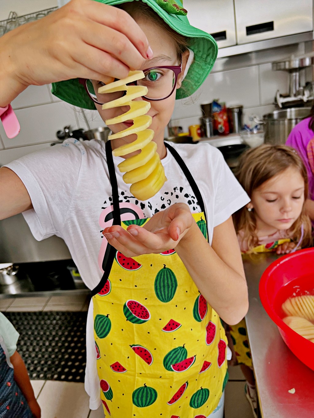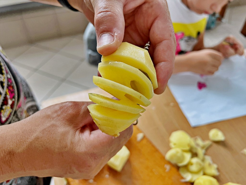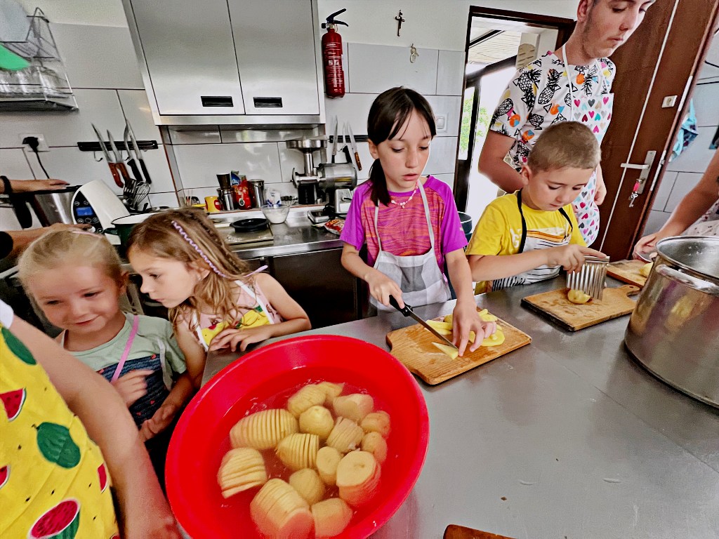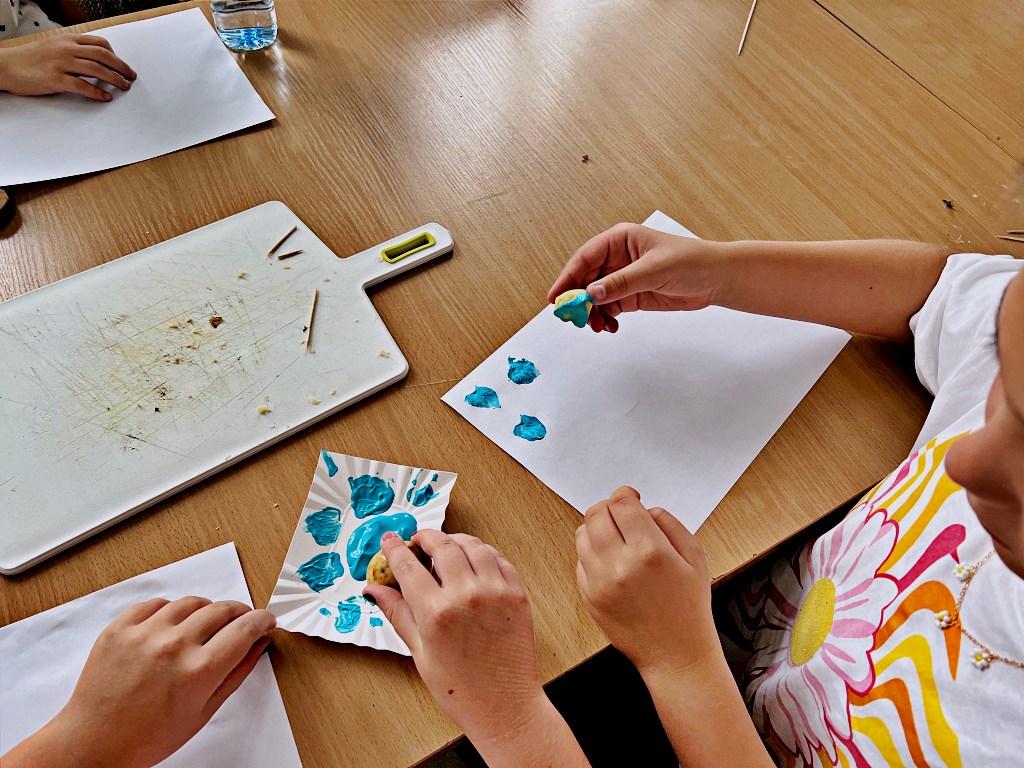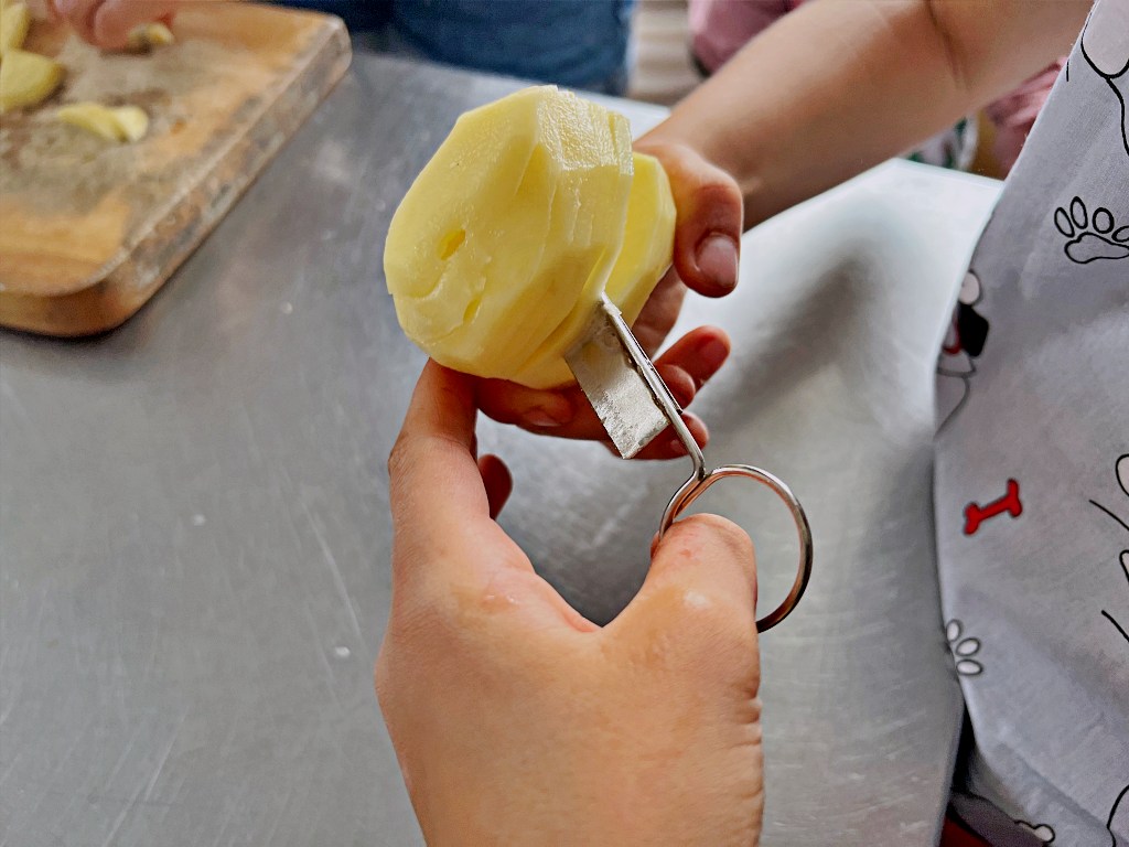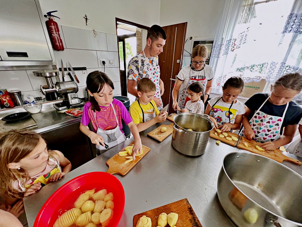 Na zajęciach wakacyjnych w CEE zaczęliśmy od obierania ziemniaków. Następnie przeszliśmy do kuchni udostępnionej przez KGW z WIeprza Panią Janinę Kłusak, gdzie odbyły się warsztaty kulinarne. Każdy mógł wziąć udział w przygotowywaniu różnych potraw z ziemniaka. W menu znalazły się frytki, placki ziemniaczane i wiele innych smakowitych przysmaków. Dzięki wspólnemu gotowaniu zyskaliśmy nowe umiejętności kulinarne i okazję do podzielenia się swoimi ulubionymi przepisami z ziemniakami.
