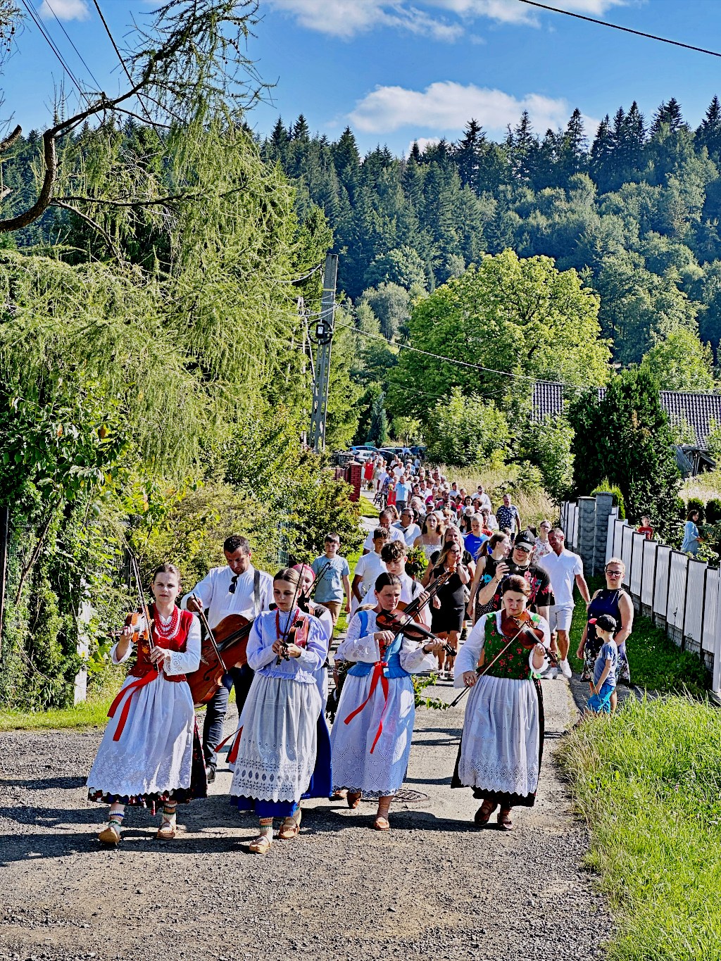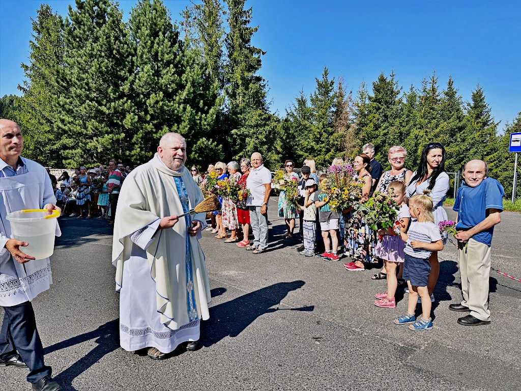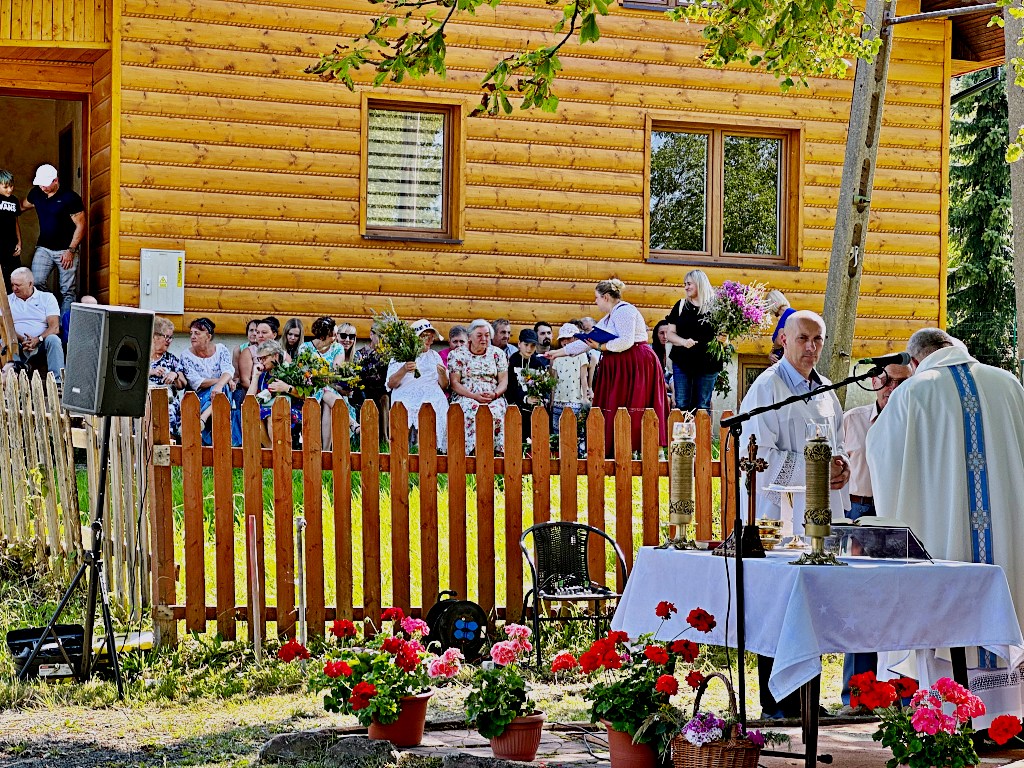 Uroczystość rozpoczęła się tradycyjnie piękną mszą świętą o godzinie 15.00, która zgromadziła mieszkańców Juszczyny oraz przybyłych gości. Modlitwa przy Figurze Matki Boskiej z Dzieciątkiem, pod gołym niebem, już od wielu lat stanowi tradycję lokalną. Liturgię pod przewodnictwem ks. Poboszcza Andrzeja Cisielskiego uświetniła oprawa muzyczna pełna góralskiej radości i nostalgii, której wykonanie powierzono jak co roku utalentowanej Rodzinnej Kapeli Wrzeszczów.