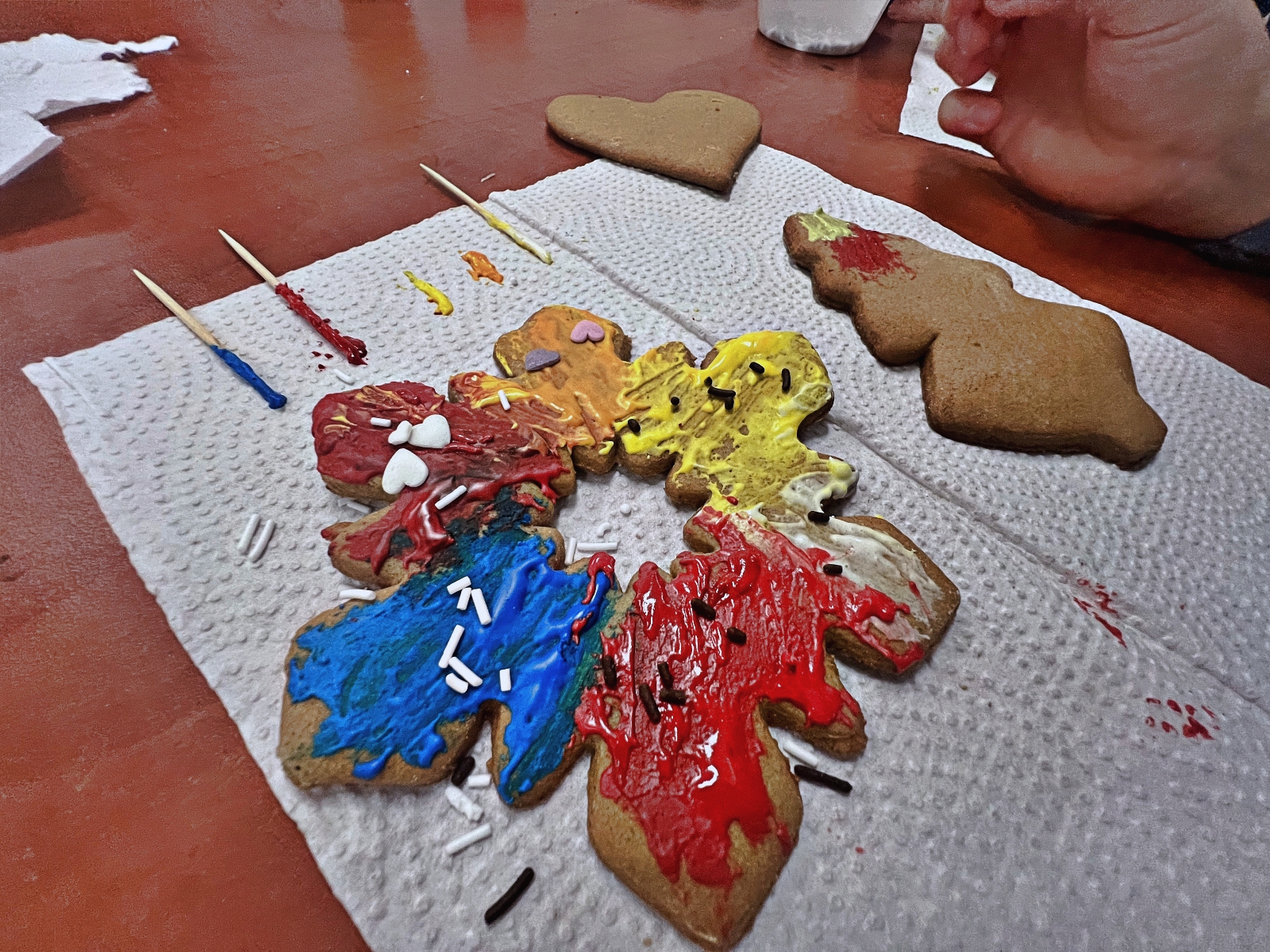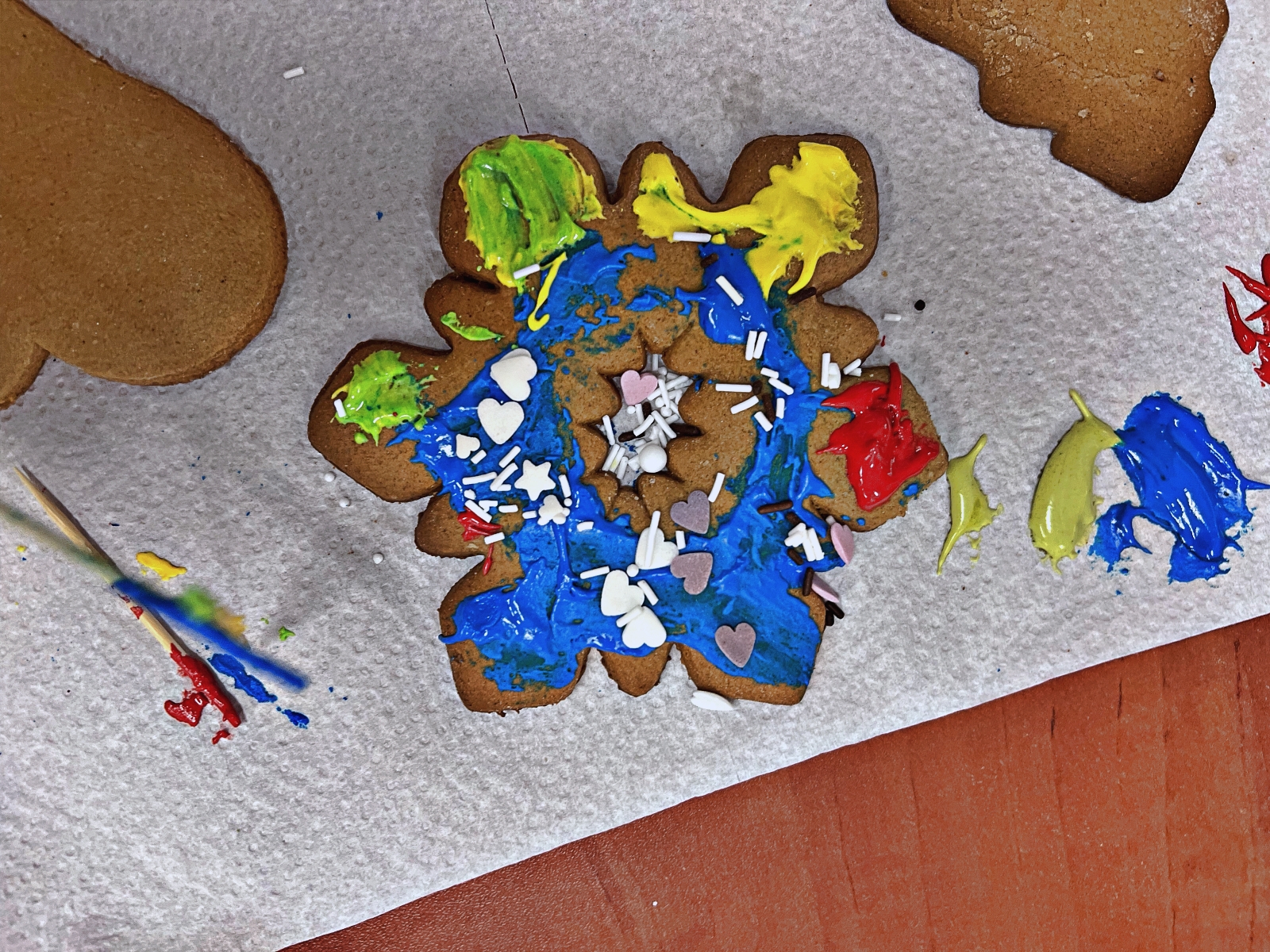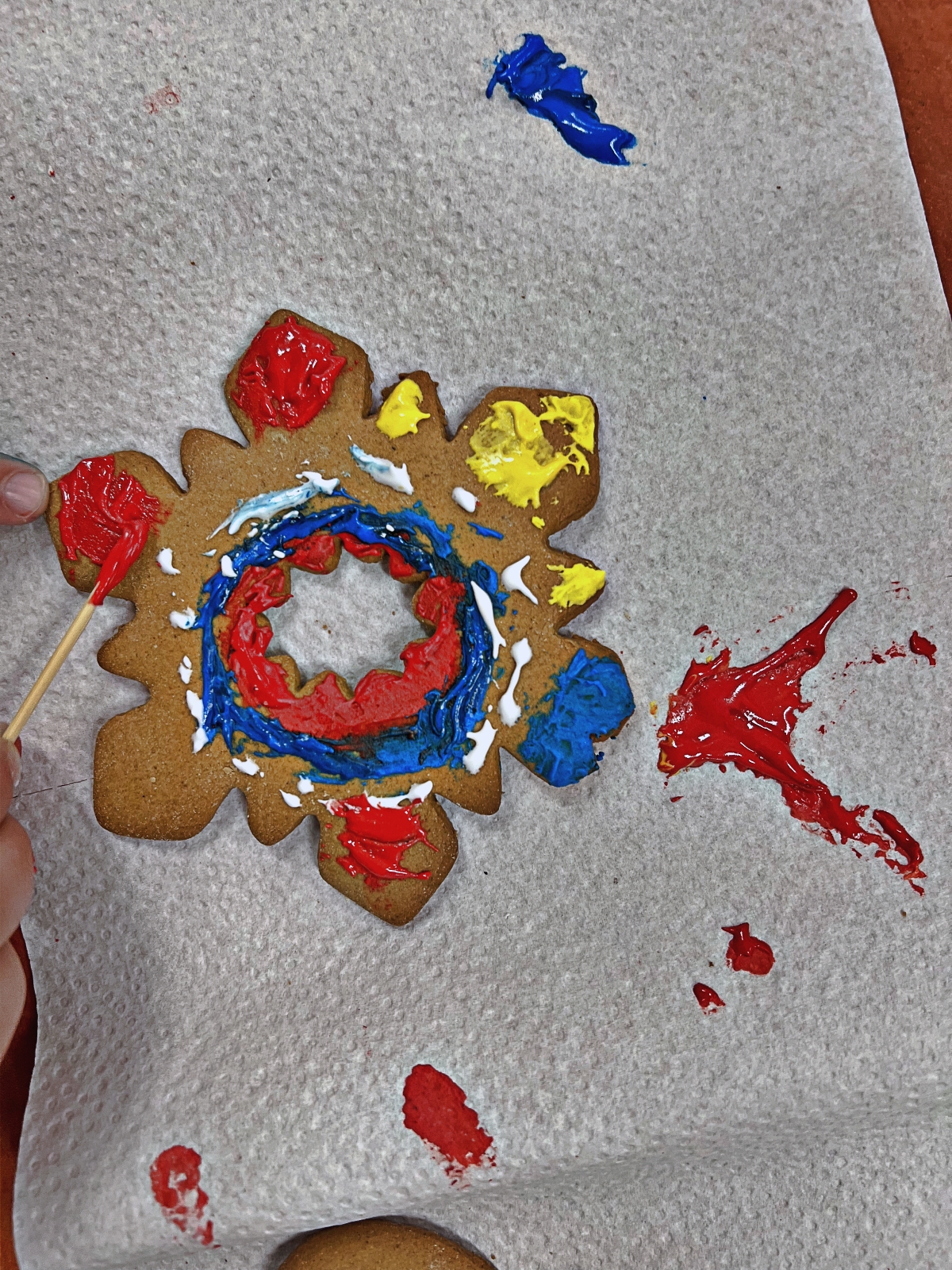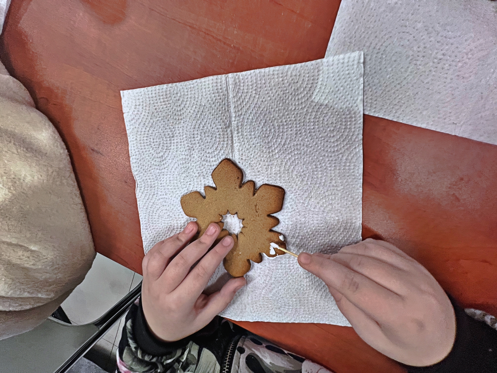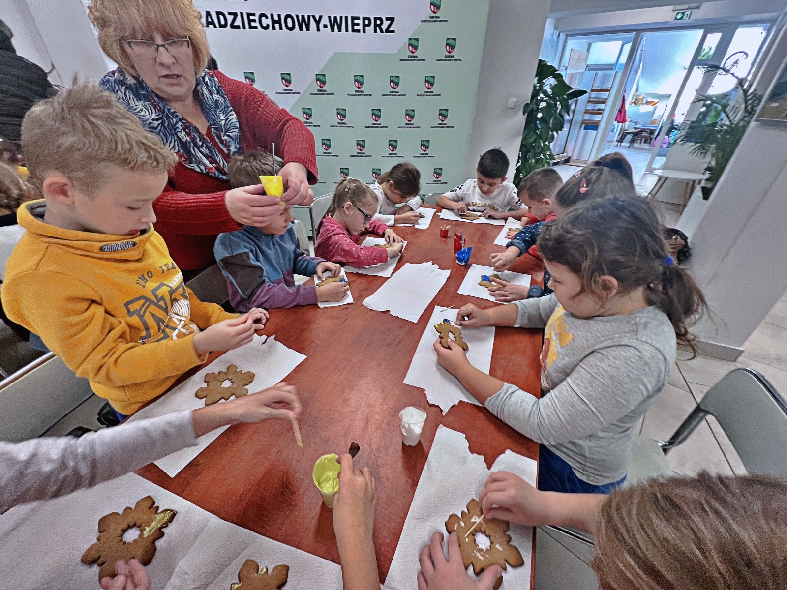 Następnie nadszedł czas na magiczną sztukę ozdabiania pierniczków. Gwiazdy, choinki, renifery i serca ożywały pod dziecięcymi paluszkami, a różnorodne słodkie koraliki i ozdoby dodawały im wyjątkowego blasku. To było prawdziwe świąteczne rękodzieło, które dzieci wykonały z entuzjazmem i pasją.