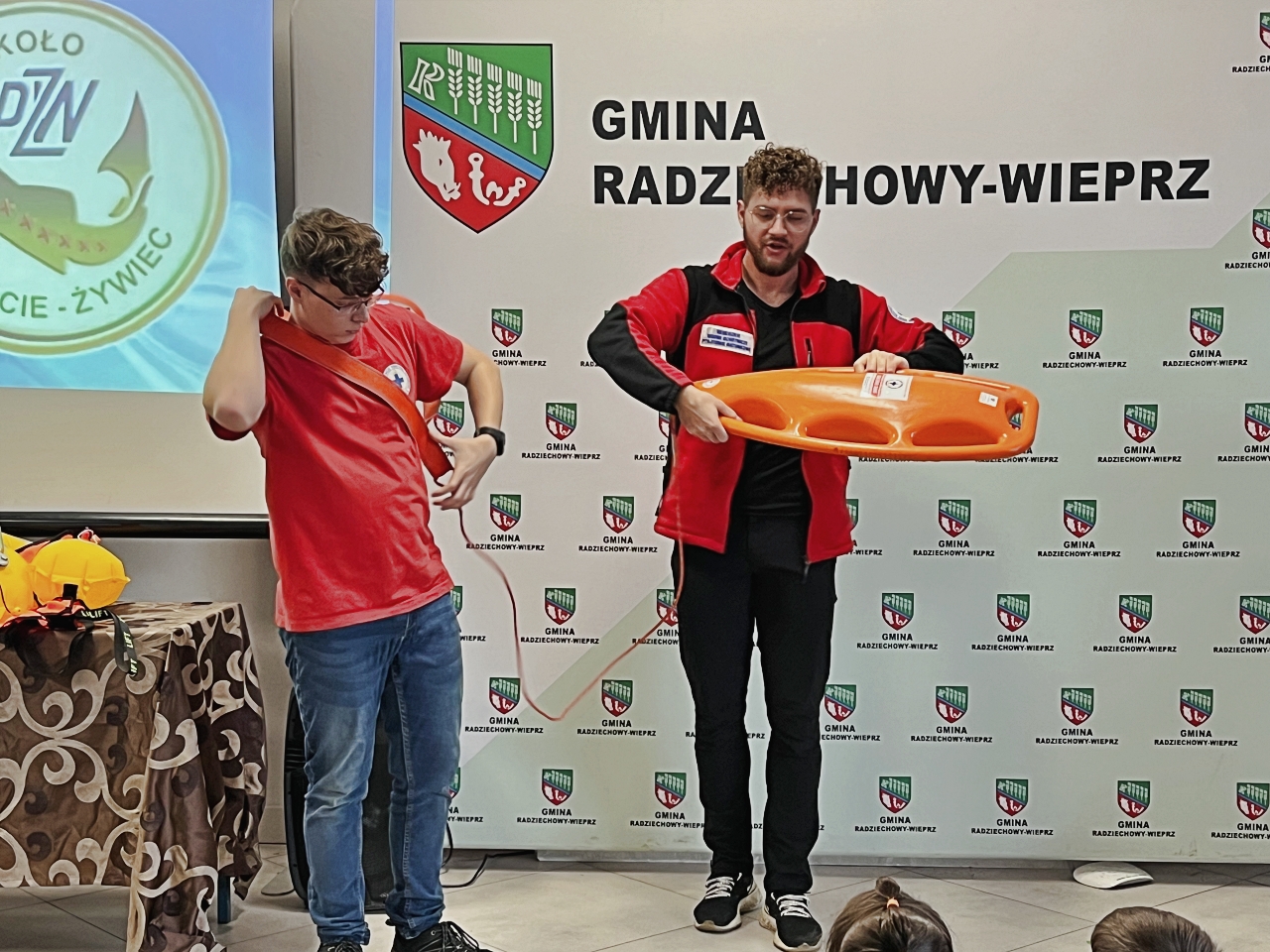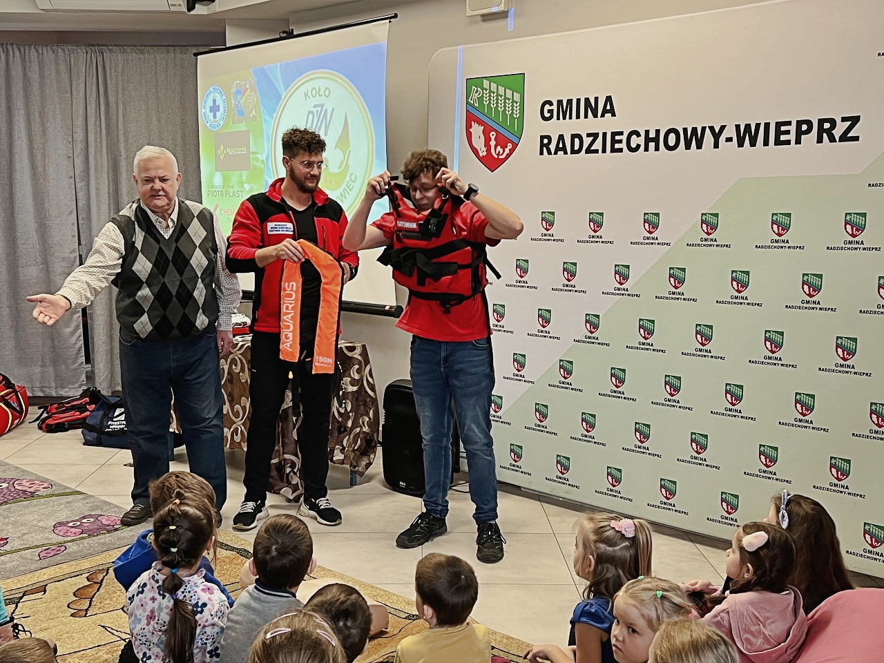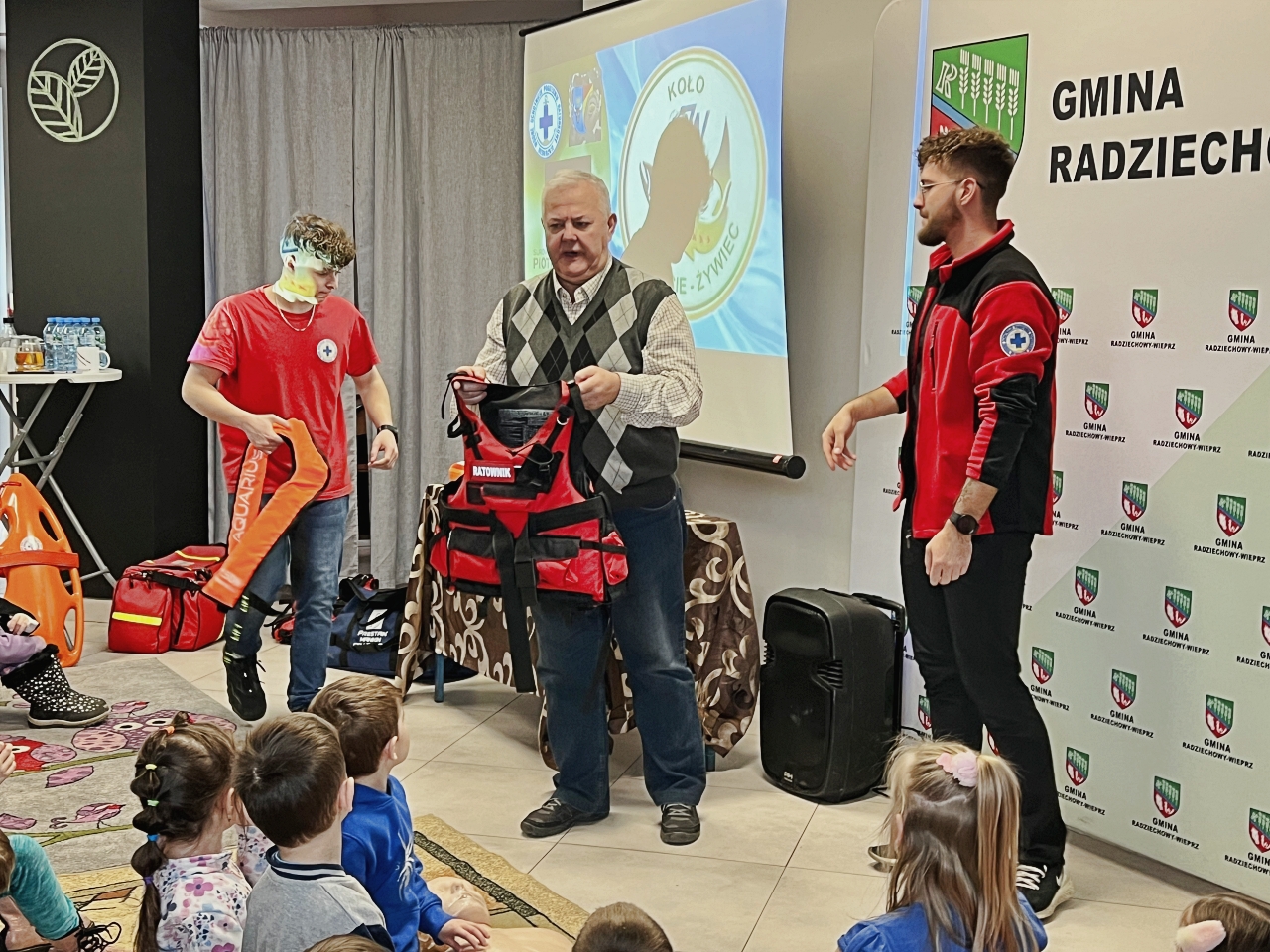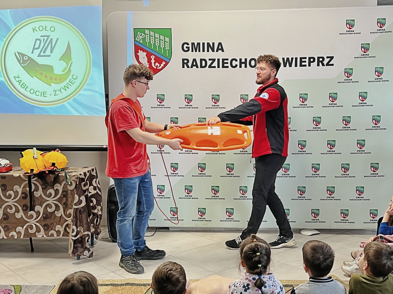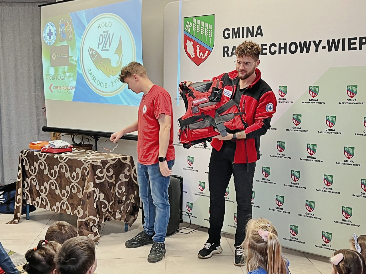 Pan Bogusław Juźwa wraz z Panem Szymonem Błachutem podzielili się swoją wiedzą na temat bezpieczeństwa nad wodą, zwracając szczególną uwagę na zasady, których przestrzeganie może zapobiec wielu niebezpieczeństwom. Panowie będący pasjonatami wędkarstwa, skupili się również na aspektach związanych z tą aktywnością, przekazując praktyczne wskazówki.