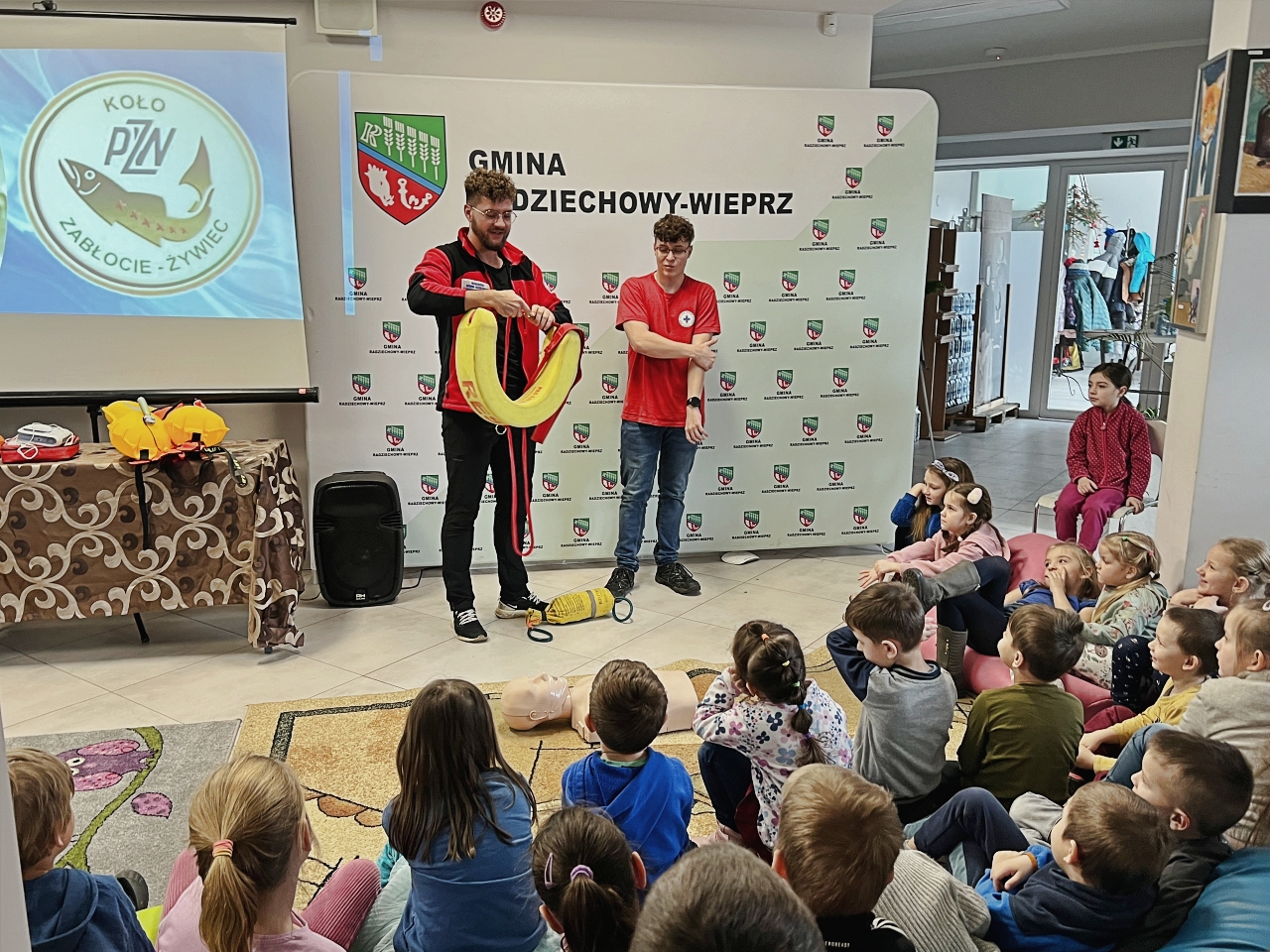 W ostatnim czasie w naszym Centrum Edukacji Ekologicznej w Wieprzu odbyły się niezwykłe warsztaty z zakresu bezpieczeństwa nad wodą, prowadzone przez doświadczonych Panów – Pana Bogusława Juźwę i Pana Szymona Błachuta z Polskiego Związku Wędkarzy Żywiec Zabłocie. Tematem spotkania było prawidłowe zachowanie się nad wodą, a uczestnicy mieli okazję nie tylko zdobyć cenne informacje teoretyczne, ale także w praktyce nauczyć się, jak reagować w sytuacjach zagrożenia życia.
