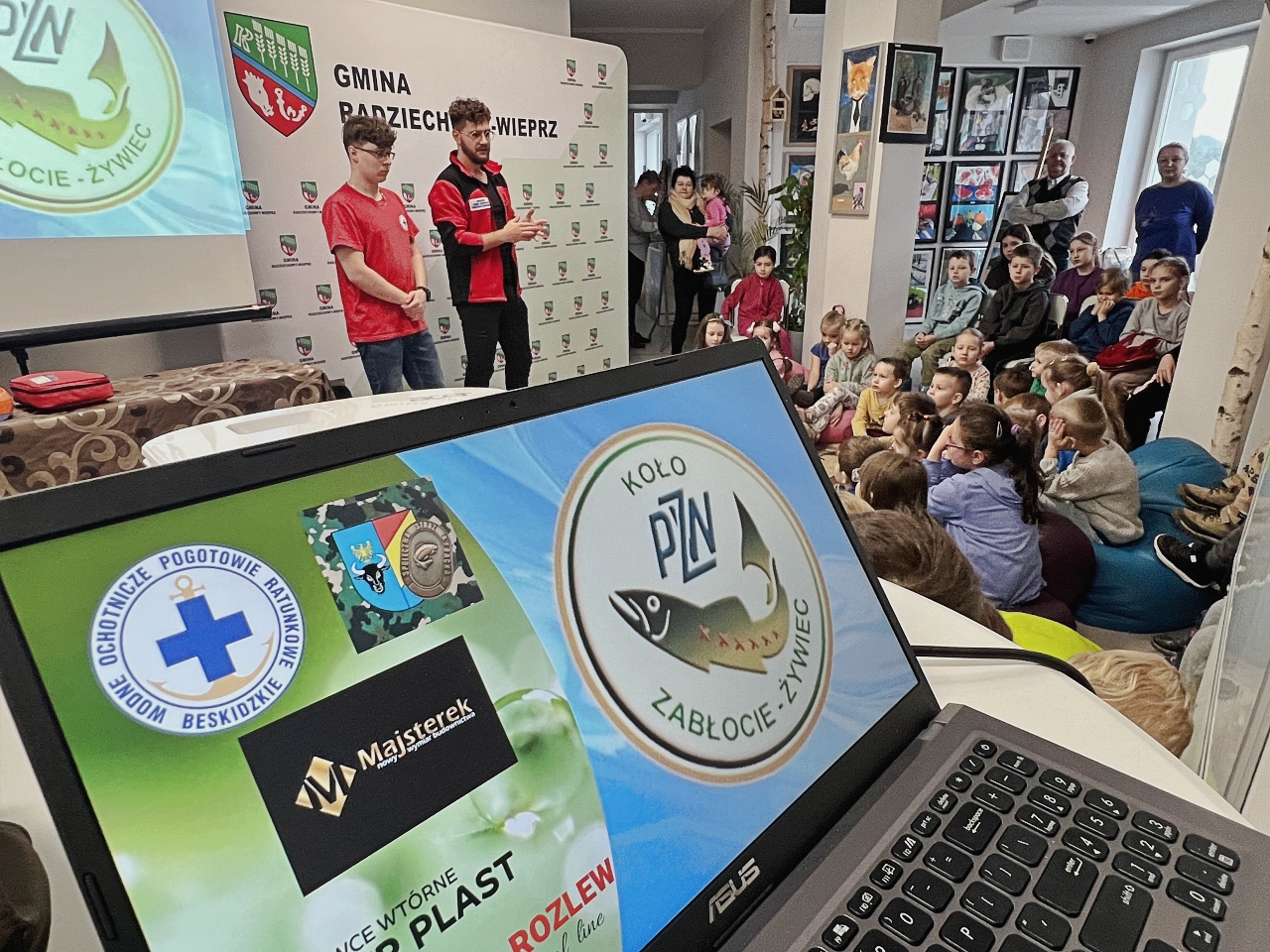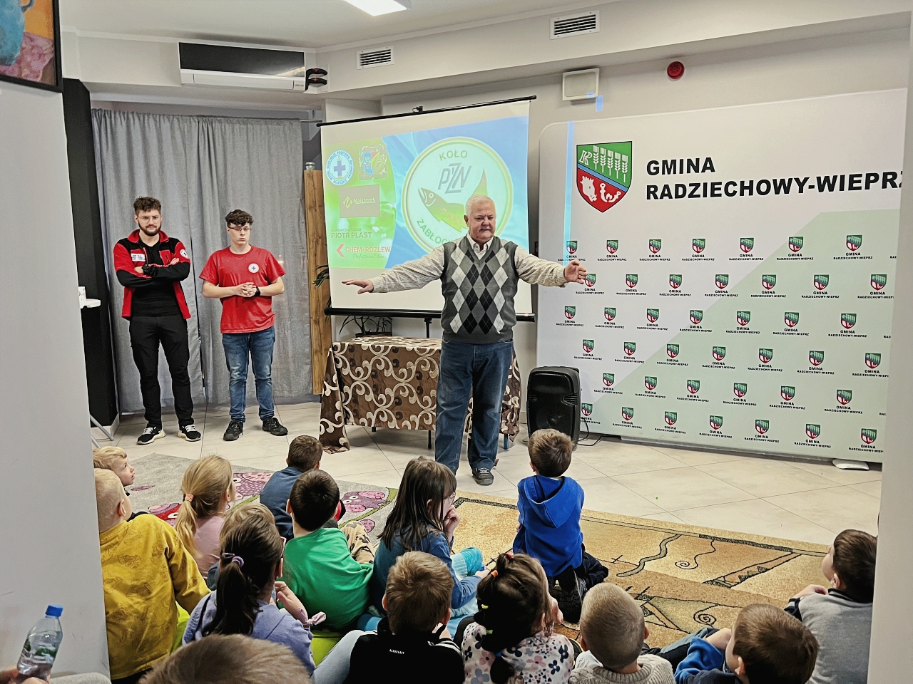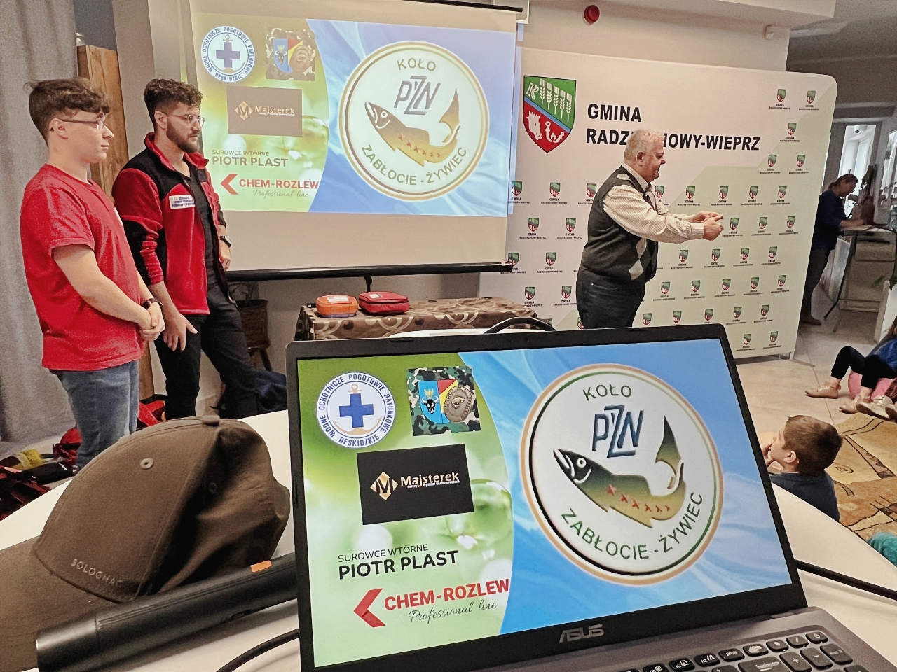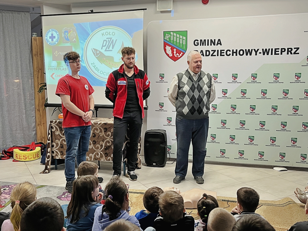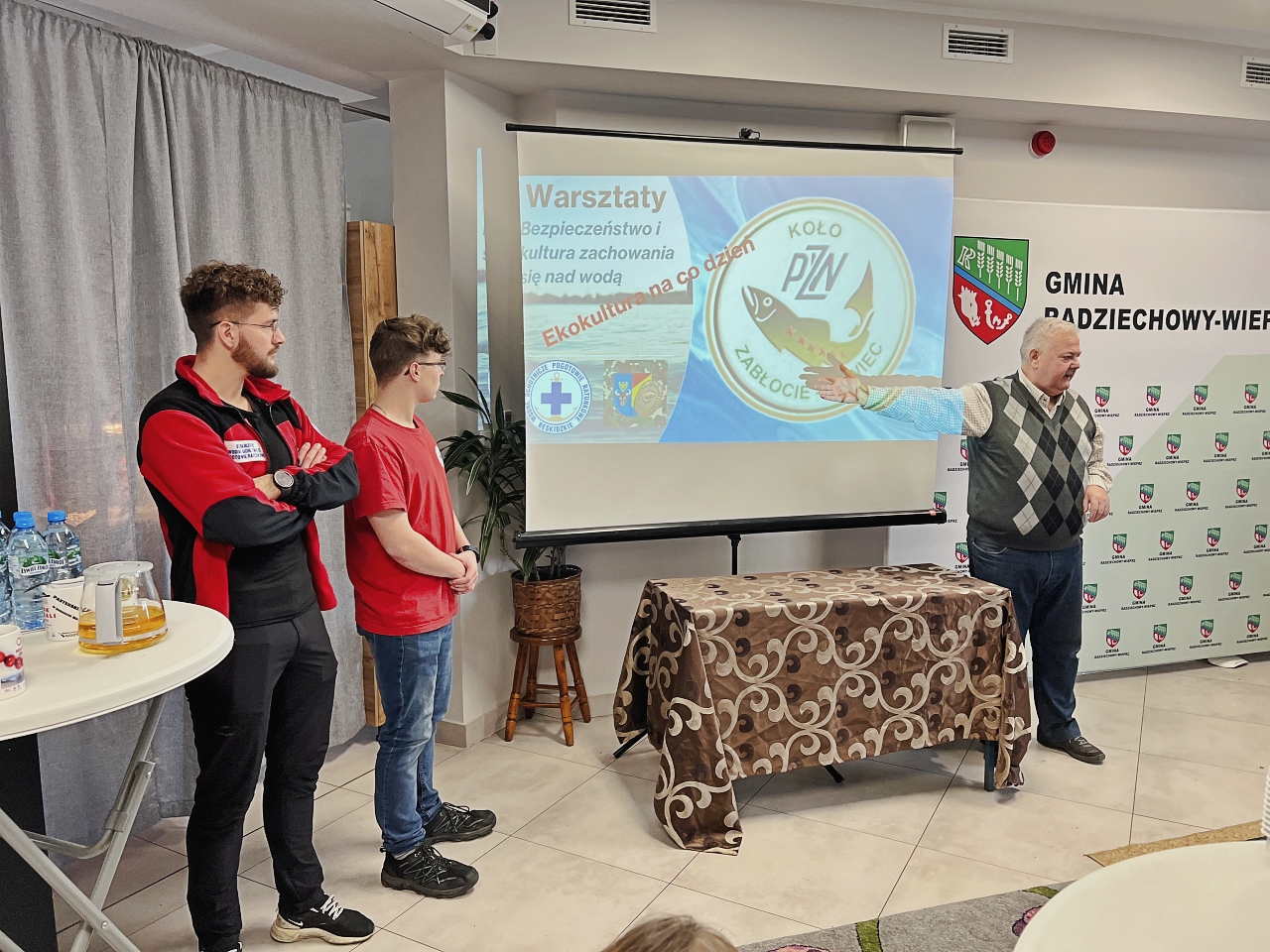 Pan Bogusław Juźwa wraz z Panem Szymonem Błachutem podzielili się swoją wiedzą na temat bezpieczeństwa nad wodą, zwracając szczególną uwagę na zasady, których przestrzeganie może zapobiec wielu niebezpieczeństwom. Panowie będący pasjonatami wędkarstwa, skupili się również na aspektach związanych z tą aktywnością, przekazując praktyczne wskazówki.