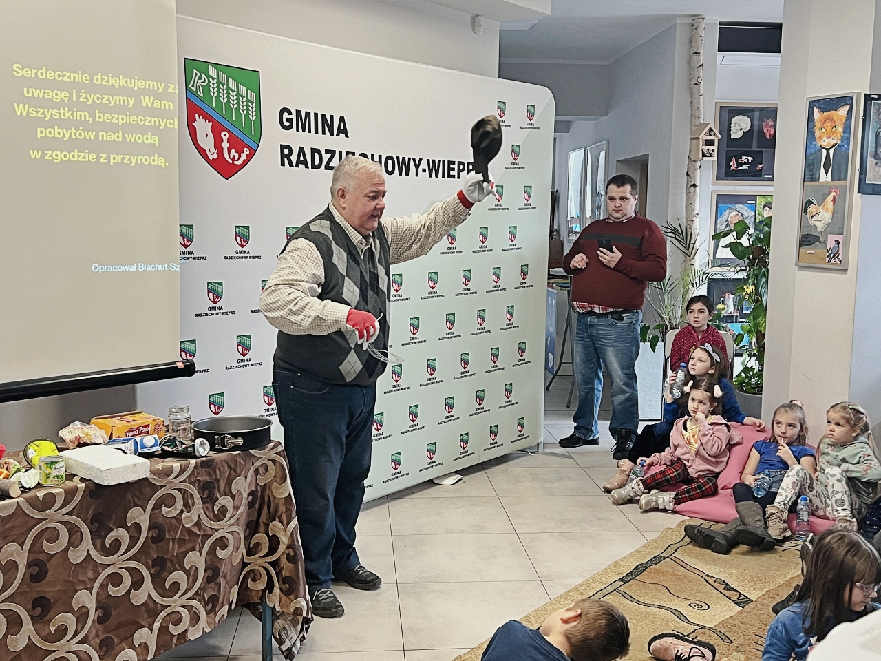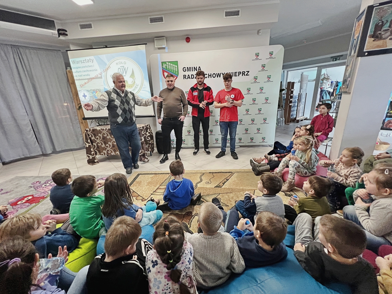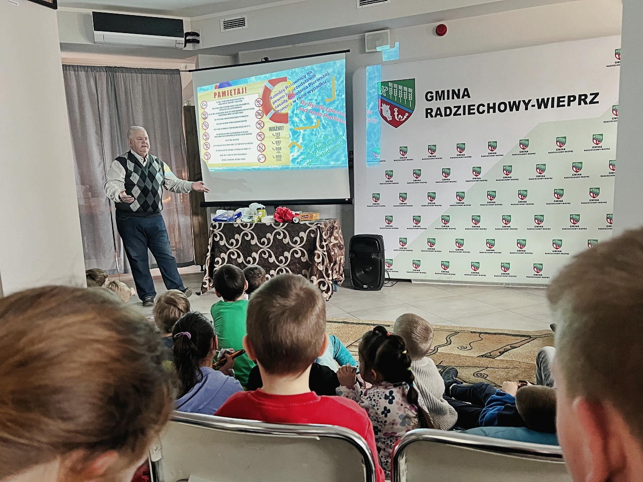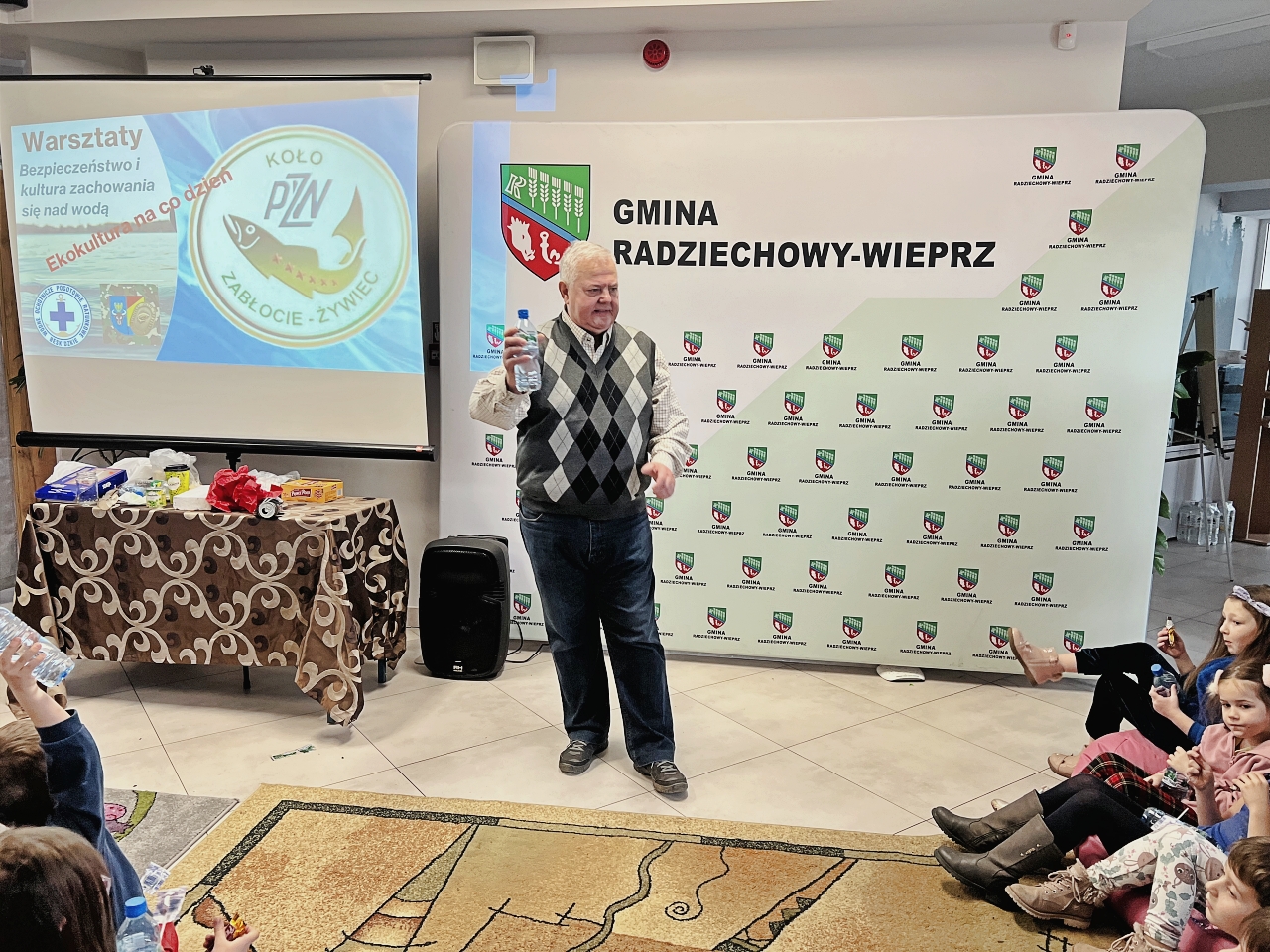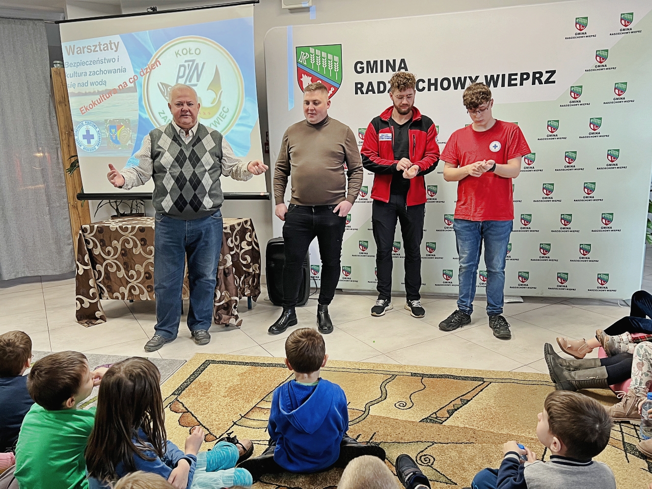 Pan Bogusław Juźwa wraz z Panem Szymonem Błachutem podzielili się swoją wiedzą na temat bezpieczeństwa nad wodą, zwracając szczególną uwagę na zasady, których przestrzeganie może zapobiec wielu niebezpieczeństwom. Panowie będący pasjonatami wędkarstwa, skupili się również na aspektach związanych z tą aktywnością, przekazując praktyczne wskazówki.