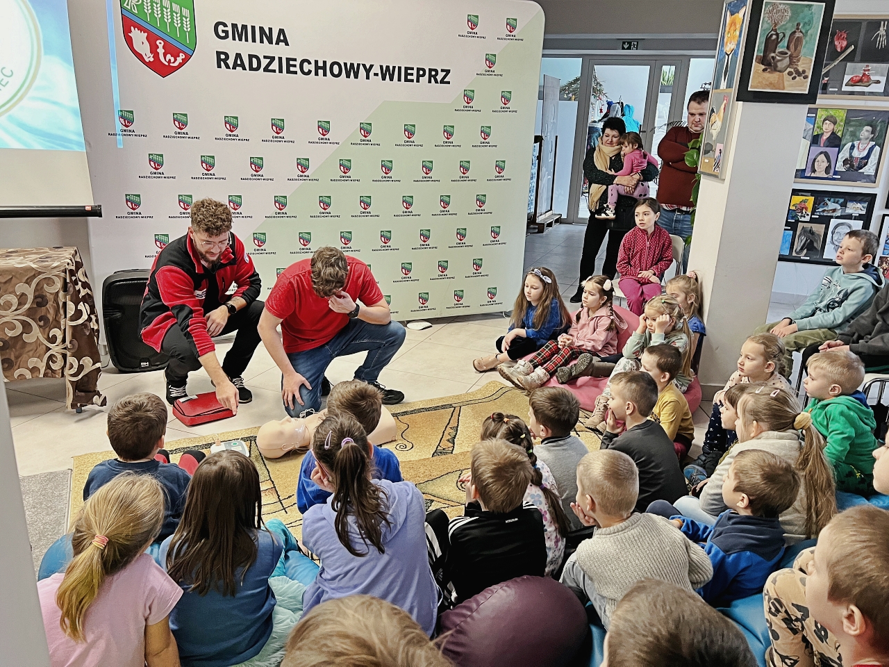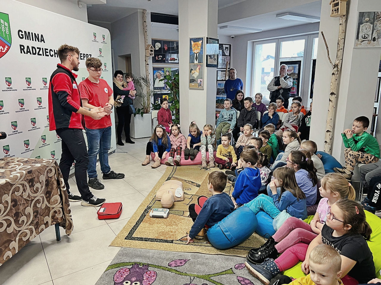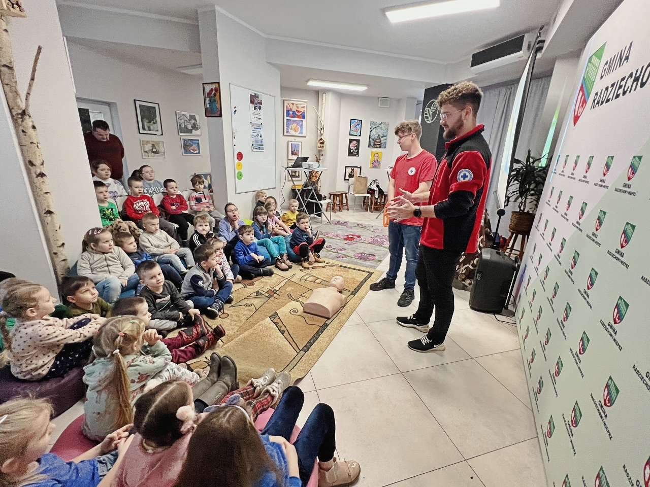Przed prelekcją Pana Bogusława Juźwy, uczestnicy warsztatów mieli okazję zapoznać się z działalnością Beskidzkiego Wodnego Ochotniczego Pogotowia Ratunkowego. Panowie z tego zespołu przedstawili sprzęt ratunkowy, którym dysponują, oraz omówili zasady działania w sytuacjach awaryjnych nad wodą. Dzieci mogły z bliska obejrzeć specjalistyczny sprzęt, a także wziąć udział w pokazach udzielania pierwszej pomocy.