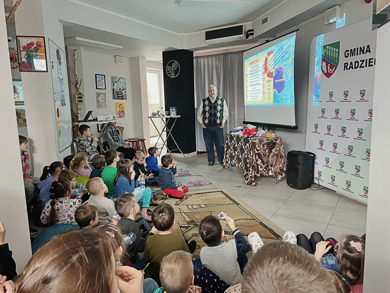 Na zakończenie spotkania dzieci mogły delektować się przysmakami, które zostały przygotowane specjalnie na tę okazję przez sponsora z firmy Majsterek. Ciastka, lizaki i popcorn stanowiły słodki akcent kończący edukacyjne warsztaty, sprawiając, że wydarzenie to było nie tylko pouczające, ale także radosne i przyjemne dla najmłodszych uczestników.