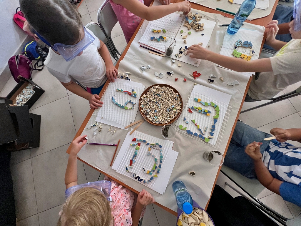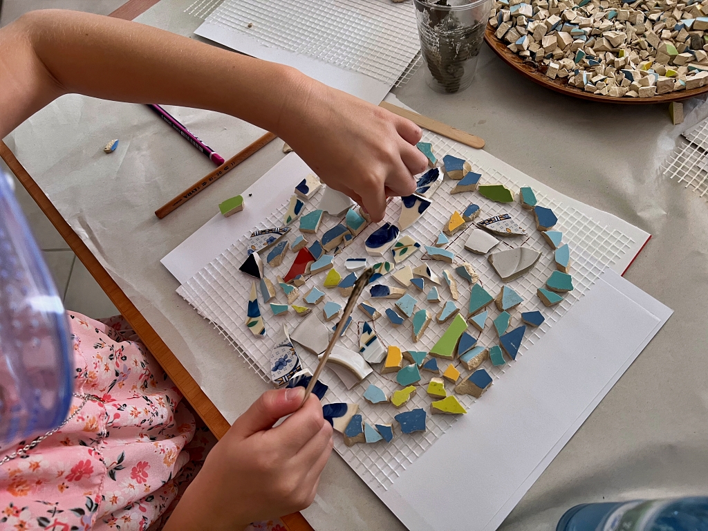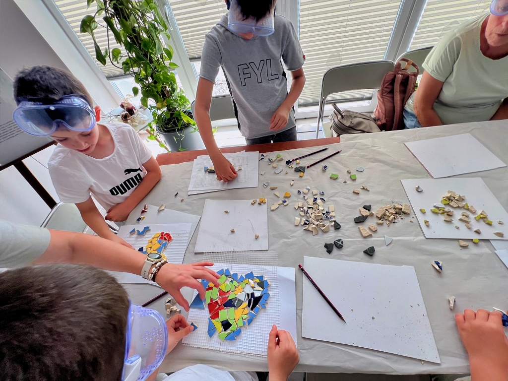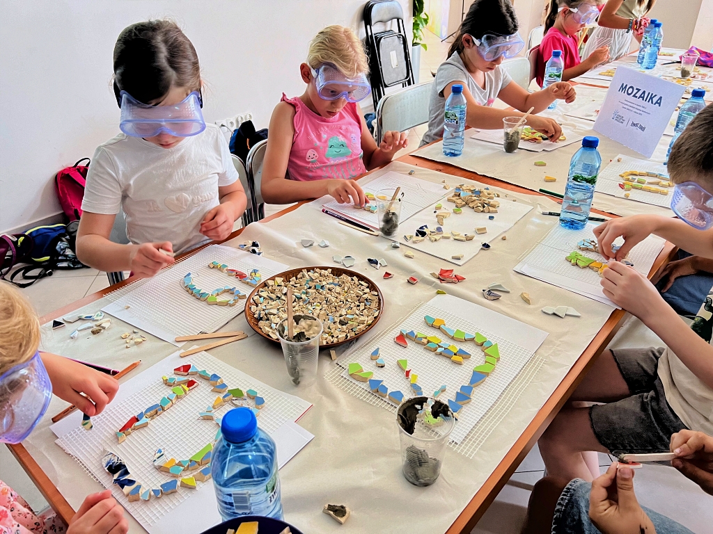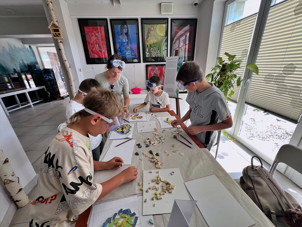 Podczas tych twórczych warsztatów, dzieci miały okazję poznać fascynującą historię mozaiki, sięgającą starożytności. Uczniowie tworzyli piękne wzory z kawałków płytek, które zostały ofiarowane przez mieszkańców Gminy Radziechowy-Wieprz.