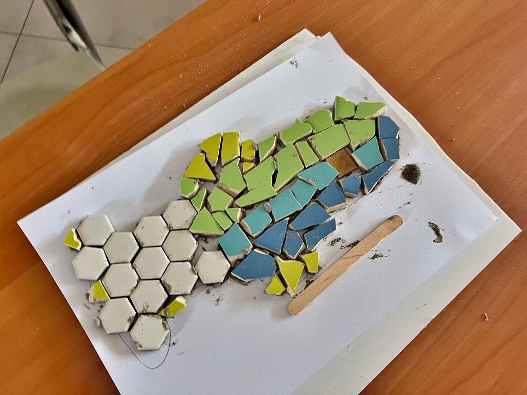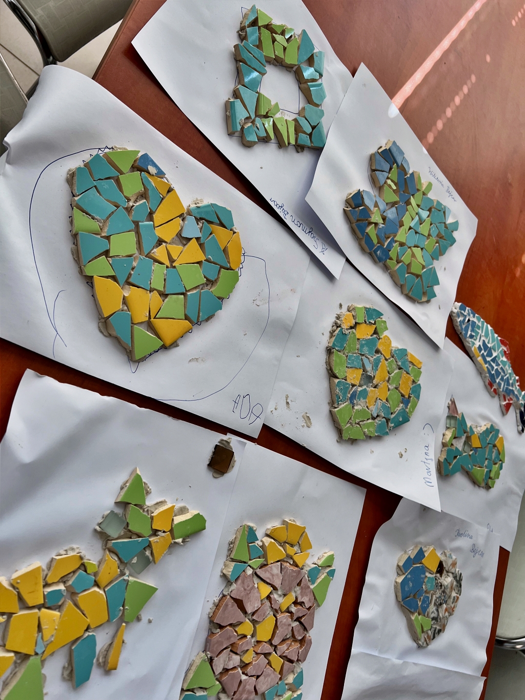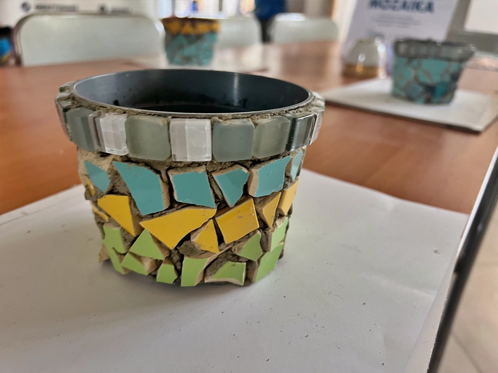 Podczas warsztatów nie zabrakło śmiechu i zabawy. Uczestnicy mieli okazję nauczyć się technik tworzenia mozaiki i zastosować je w praktyce. Proces tworzenia donic był pełen radości, a atmosfera sprzyjała kreatywnemu wyrażaniu siebie.