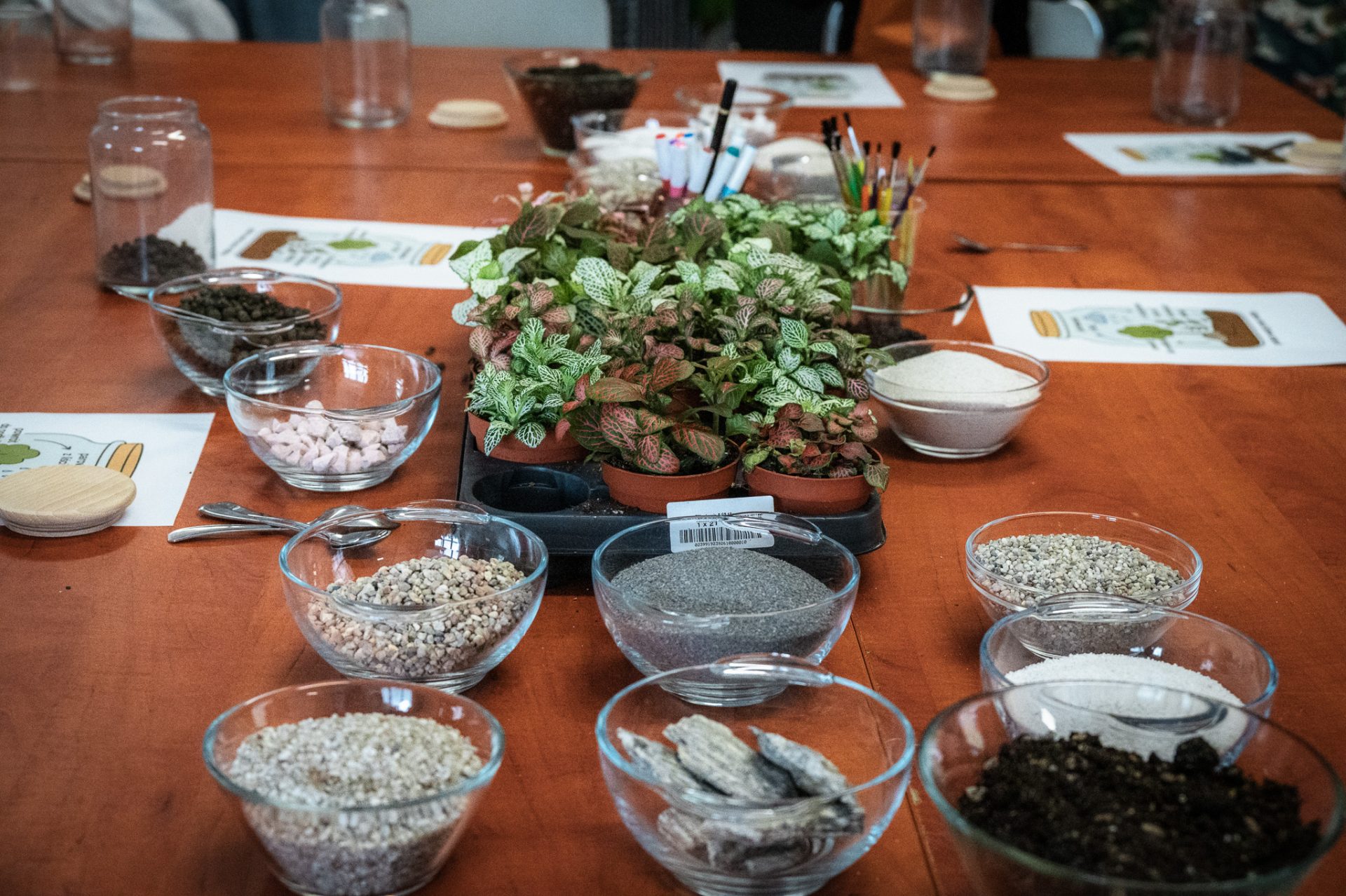 Wzięło w nich udział jedenaście uczestniczek, które z niesamowitą precyzją, wyobraźnią i wrażliwością stworzyły swoje własne, miniaturowe ogrody zamknięte w szkle. Każdy słoik to osobna historia — mały zielony świat pełen uroku.