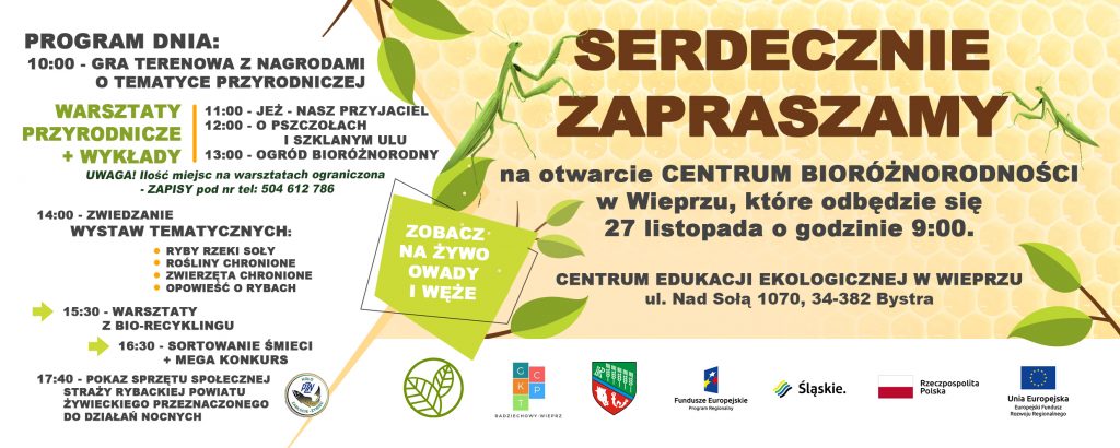 Serdecznie zapraszamy na otwarcie Centrum Edukacji Ekologicznej w Wieprzu, które odbędzie się w dniu 27 listopada o godzinie 9:00.