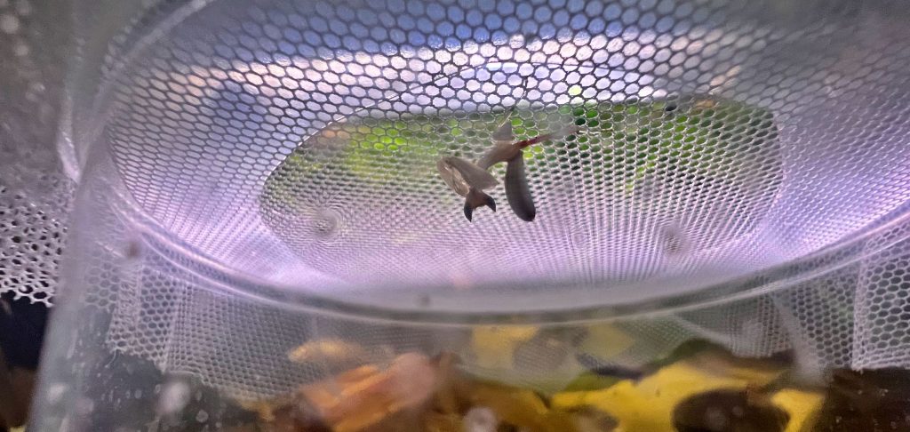 Obecnie nasza modliszka żywi się muszkami owocówkami 🙂 i uwielbia spędzać czas do góry nogami.