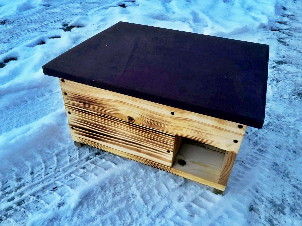 taki domek wyścielić można trocinami i dużą ilością liści, tak aby jeż mógł spokojnie zamieszkać. Przez okres zimowy domku nie ruszamy, by nie zbudzić śpiocha.