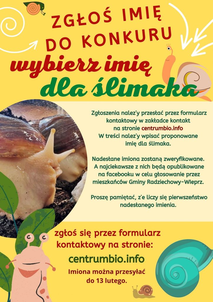Zgłoszenia należy przesłać w formularzu kontaktowym w zakładce kontakt. W treści należy wpisać proponowane imię dla ślimaka.