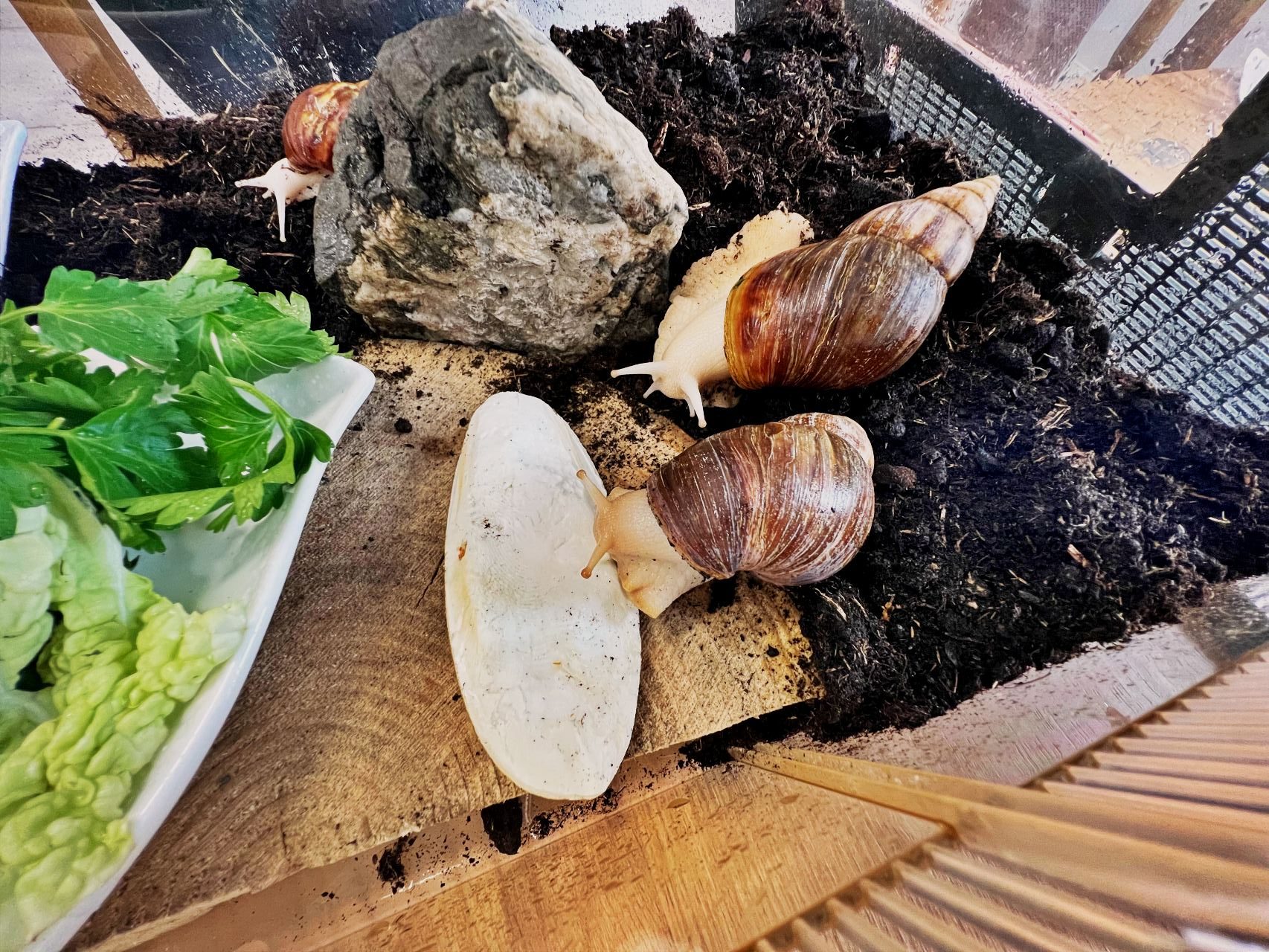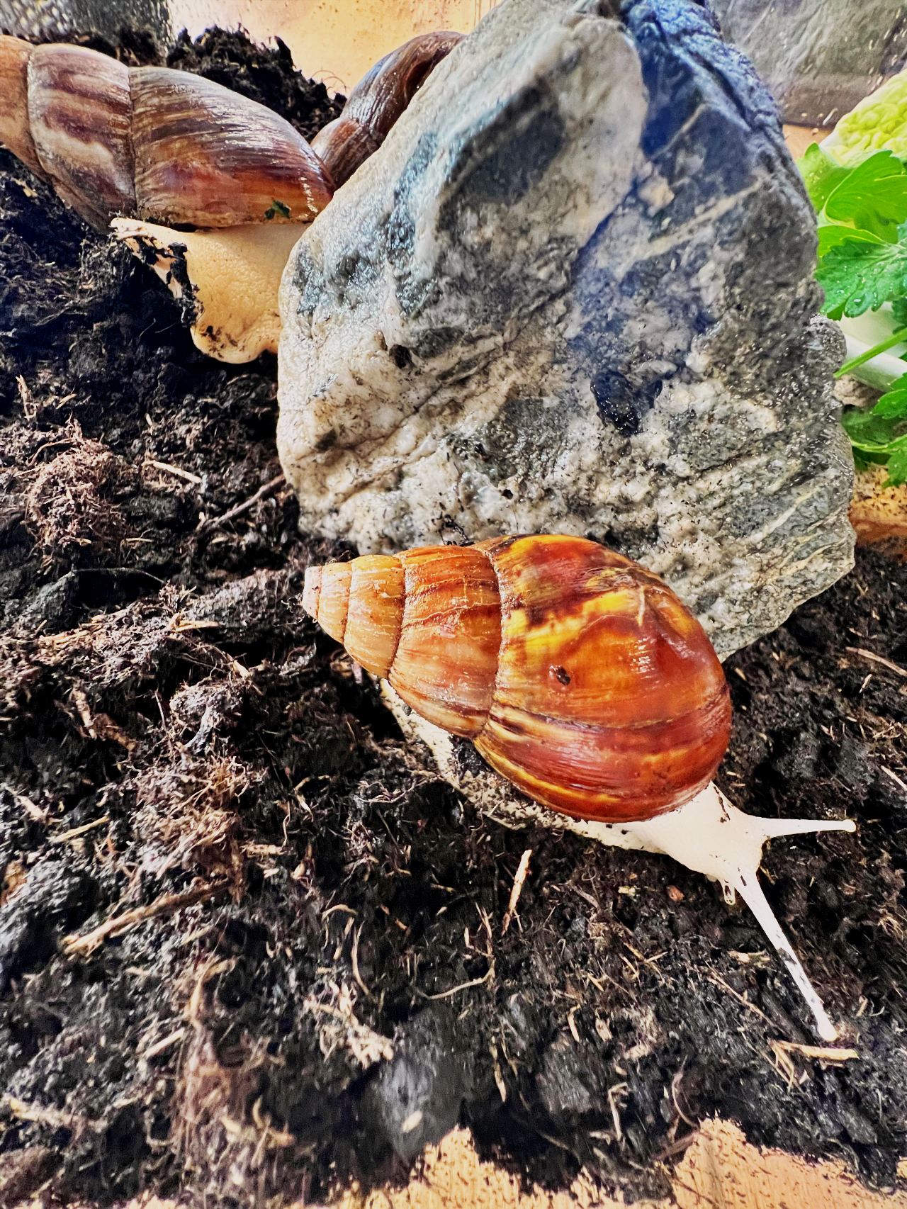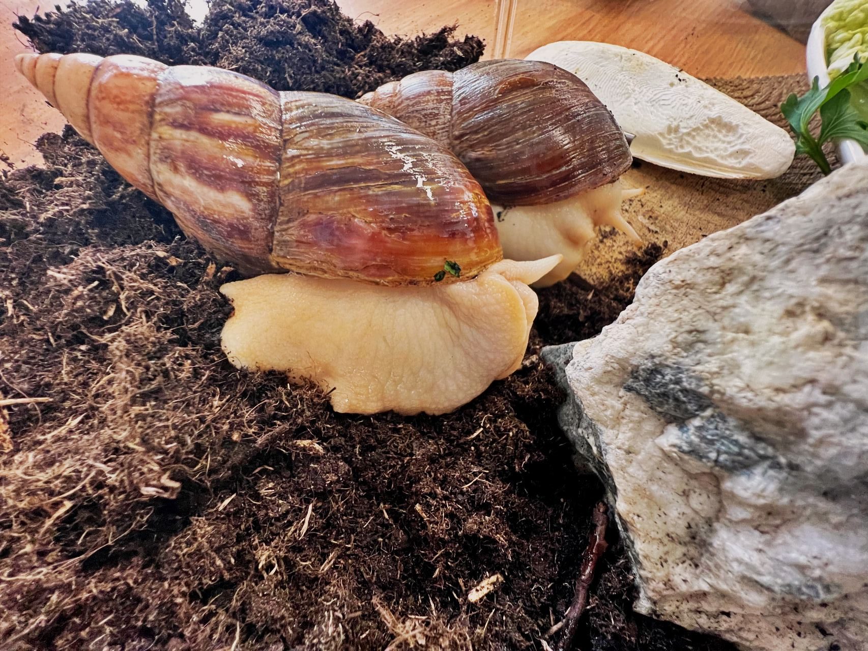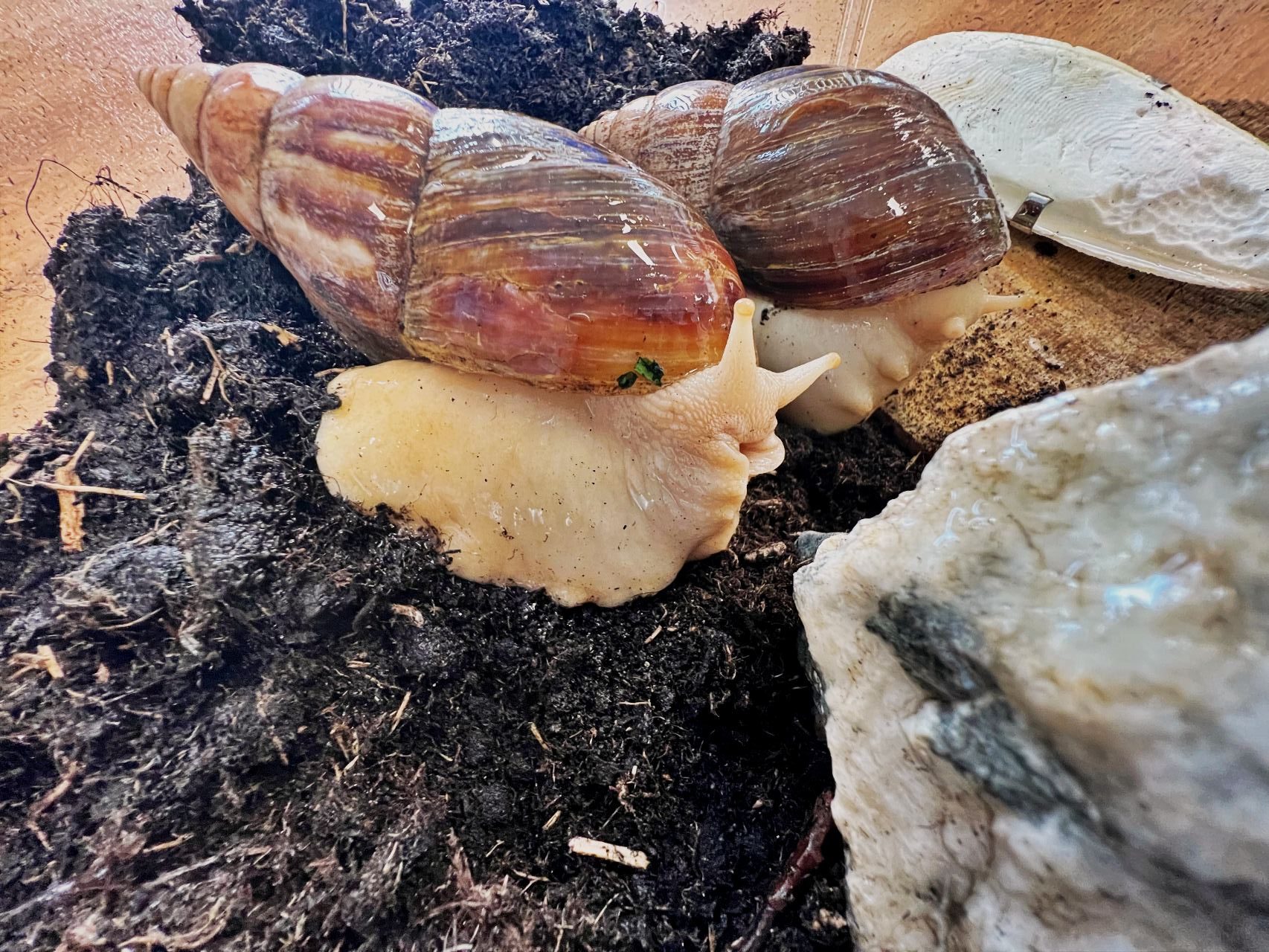 Niedawno do naszej drużyny dołączyły dwa ślimaki afrykańskie Achatina – Robin i Maurycy.