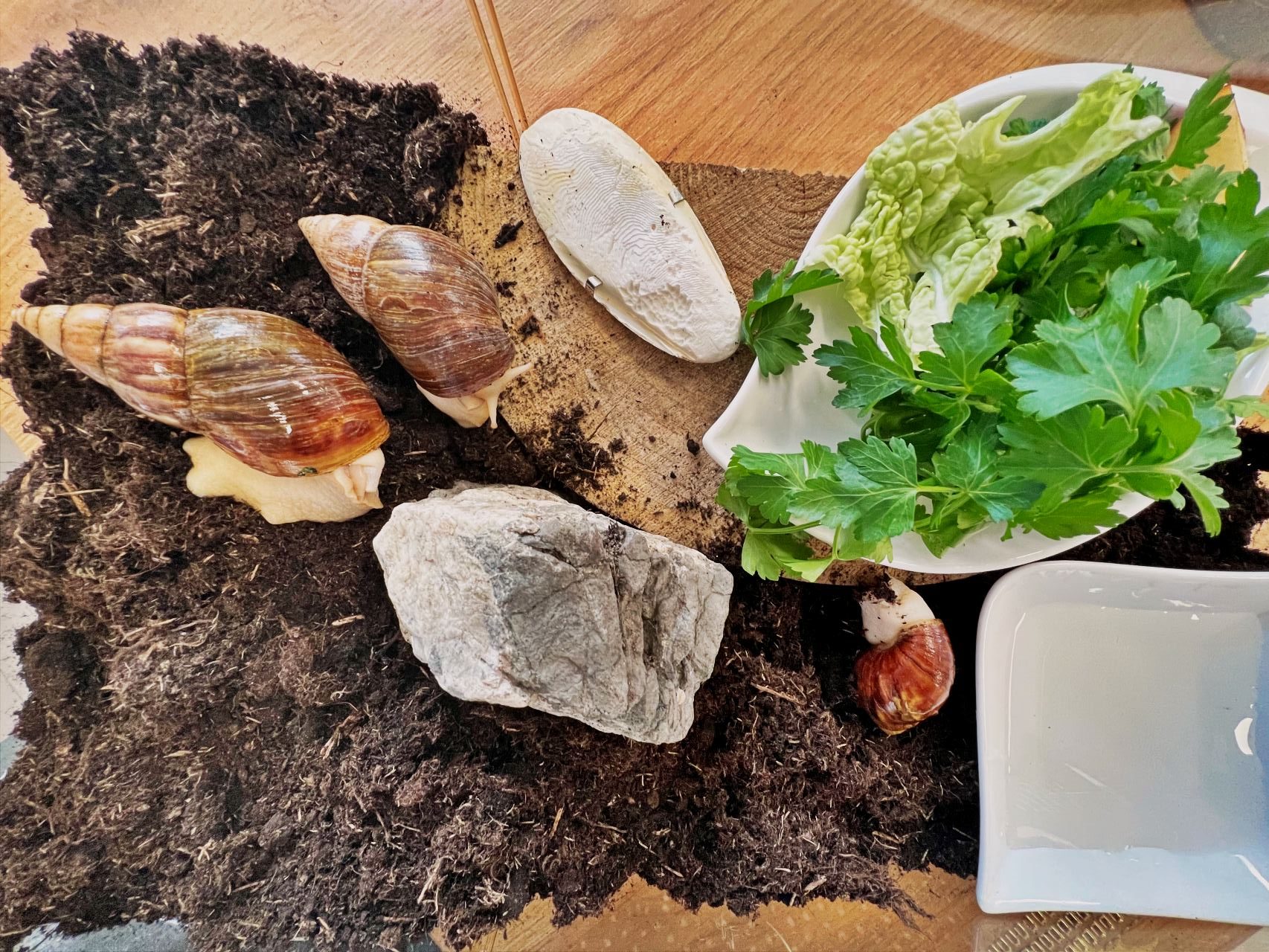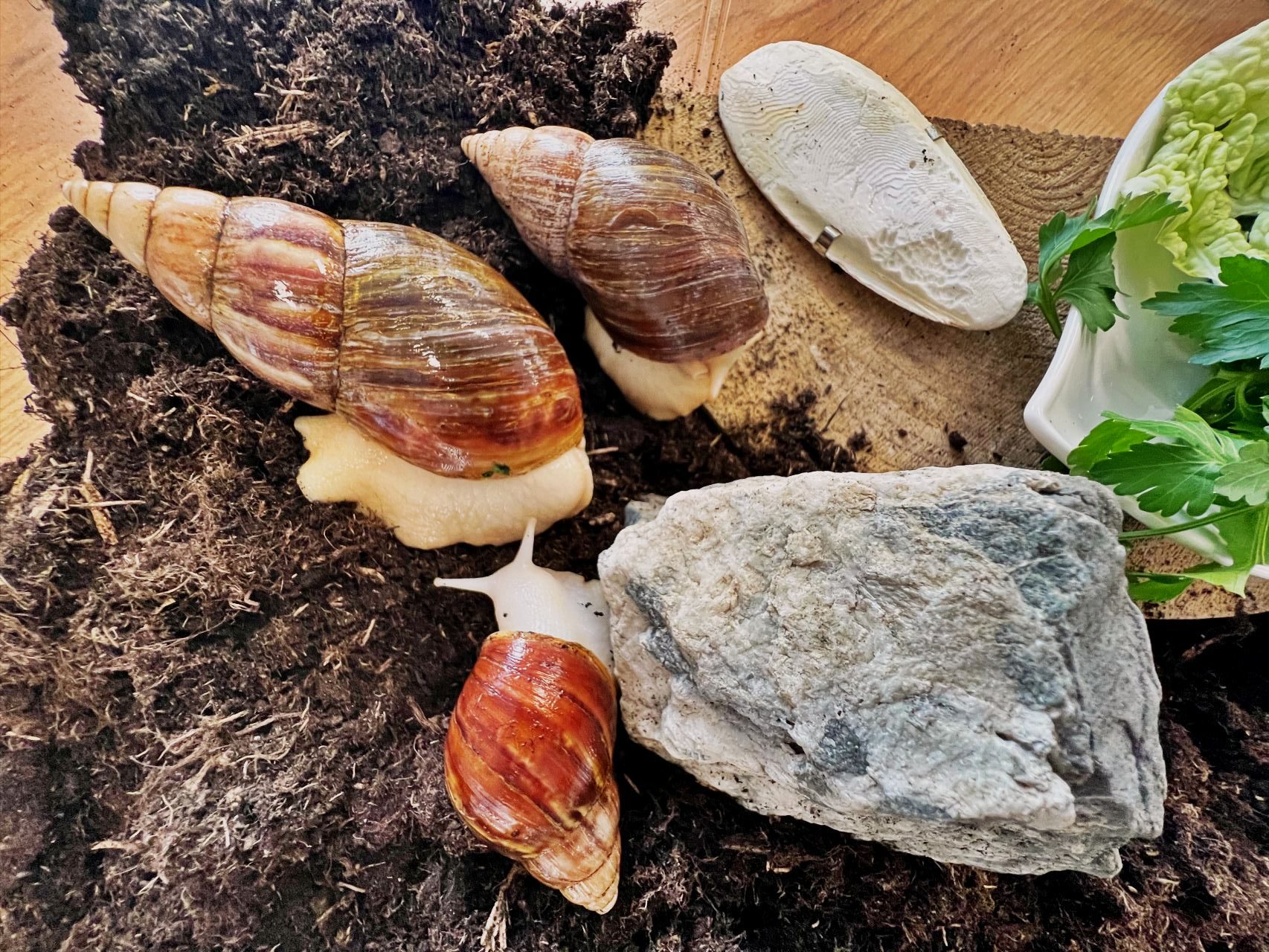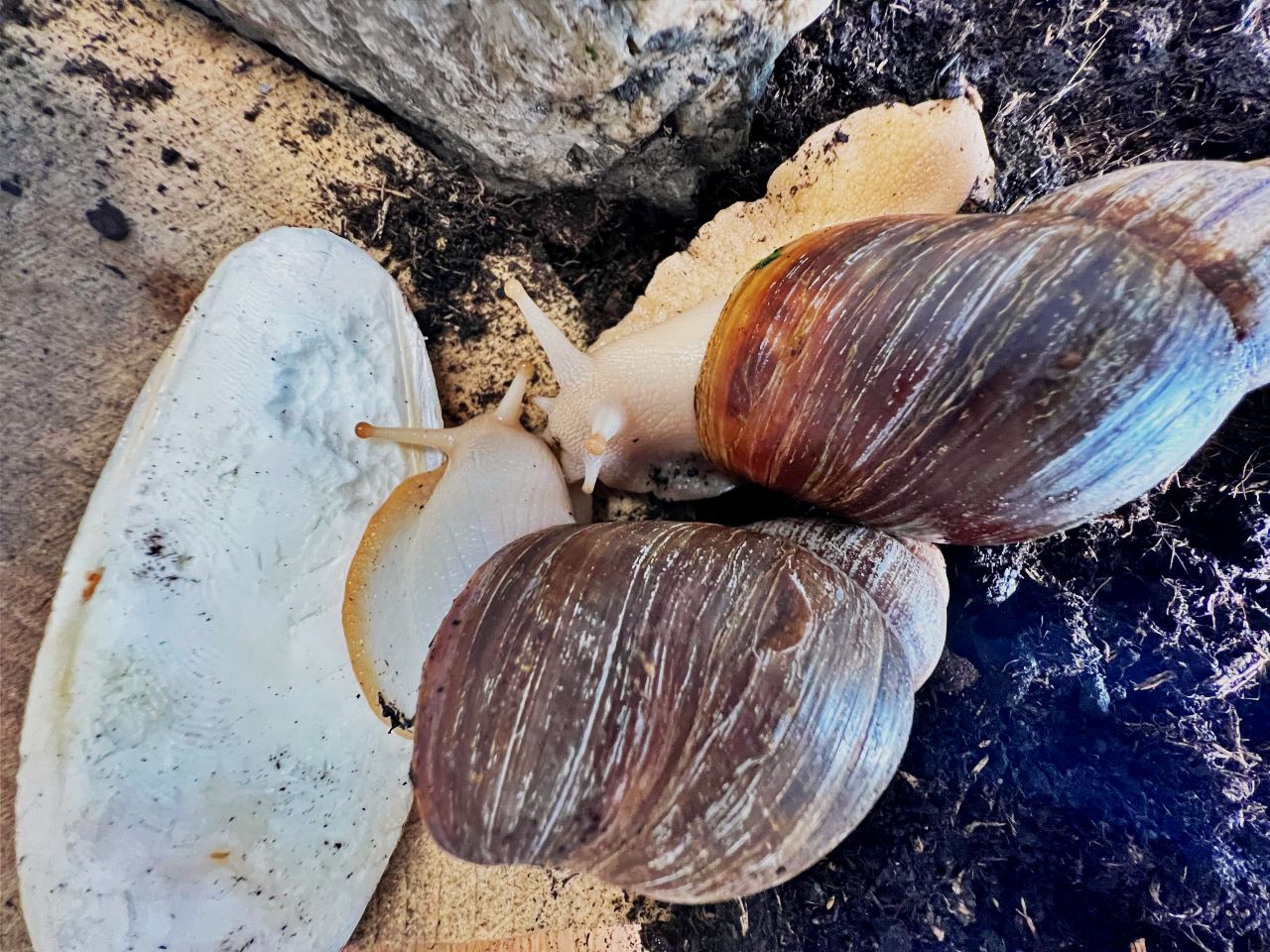 Niedawno do naszej drużyny dołączyły dwa ślimaki afrykańskie Achatina – Robin i Maurycy.