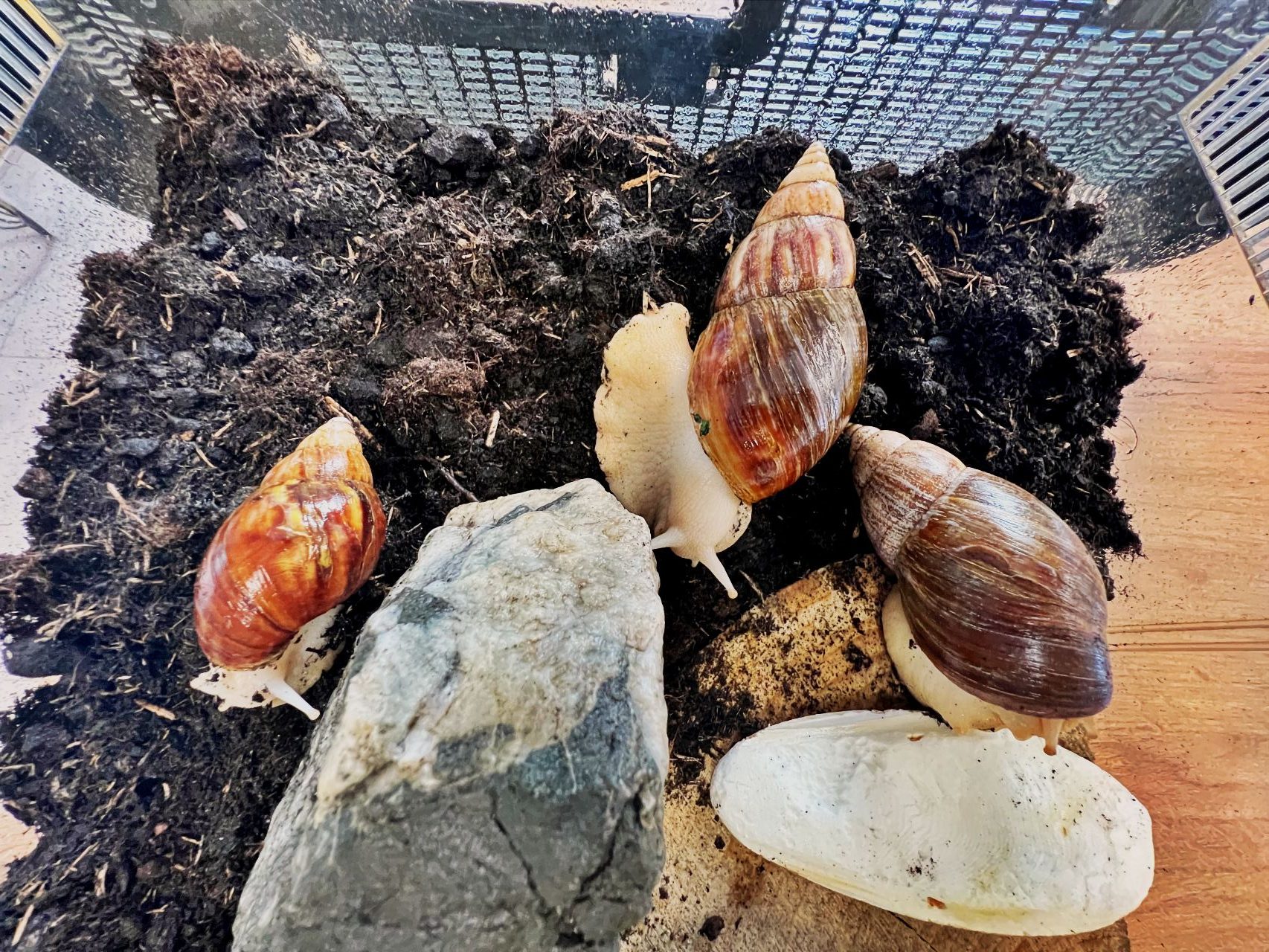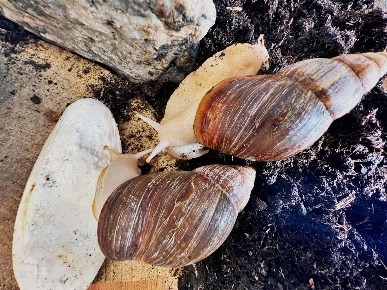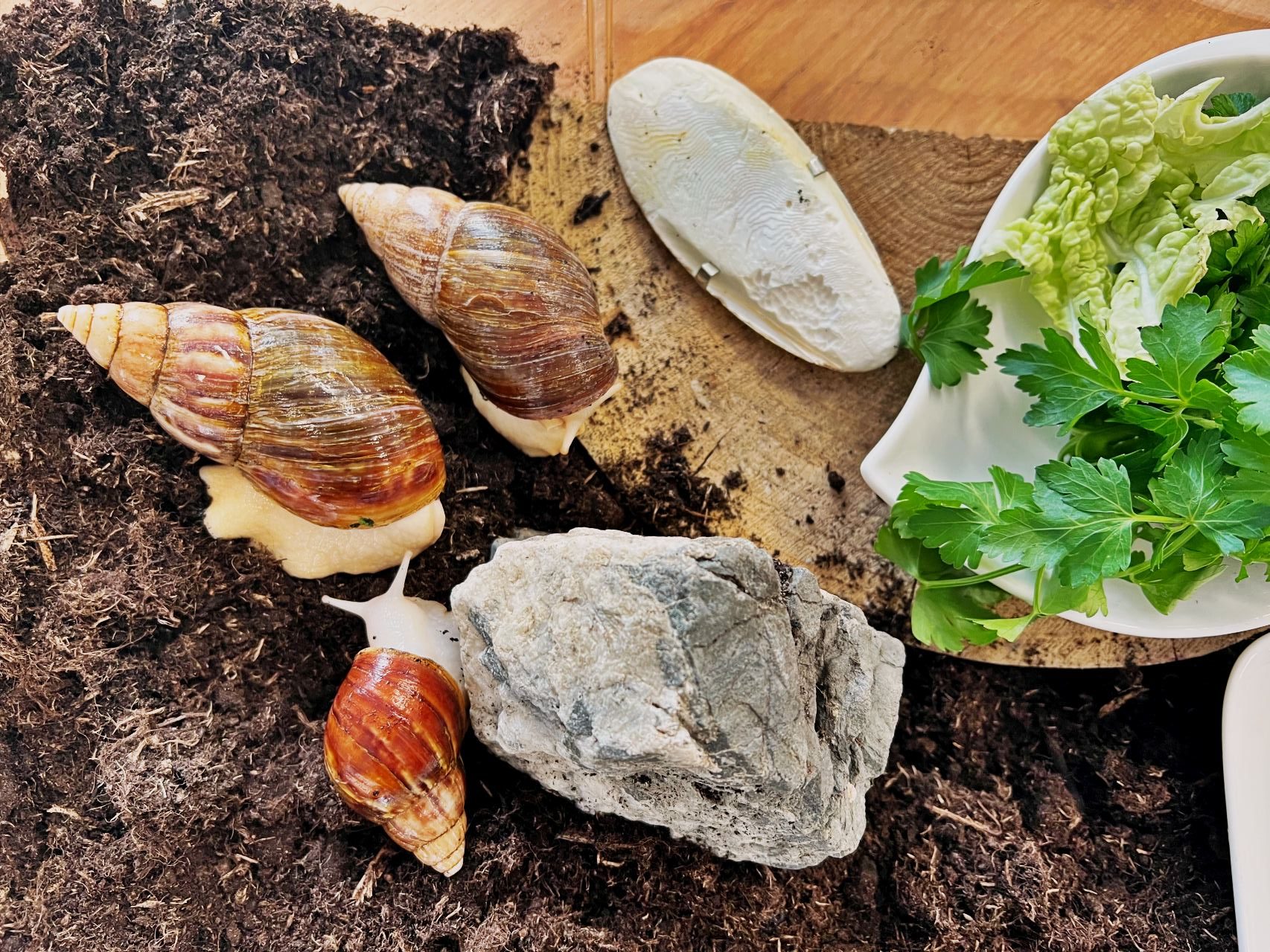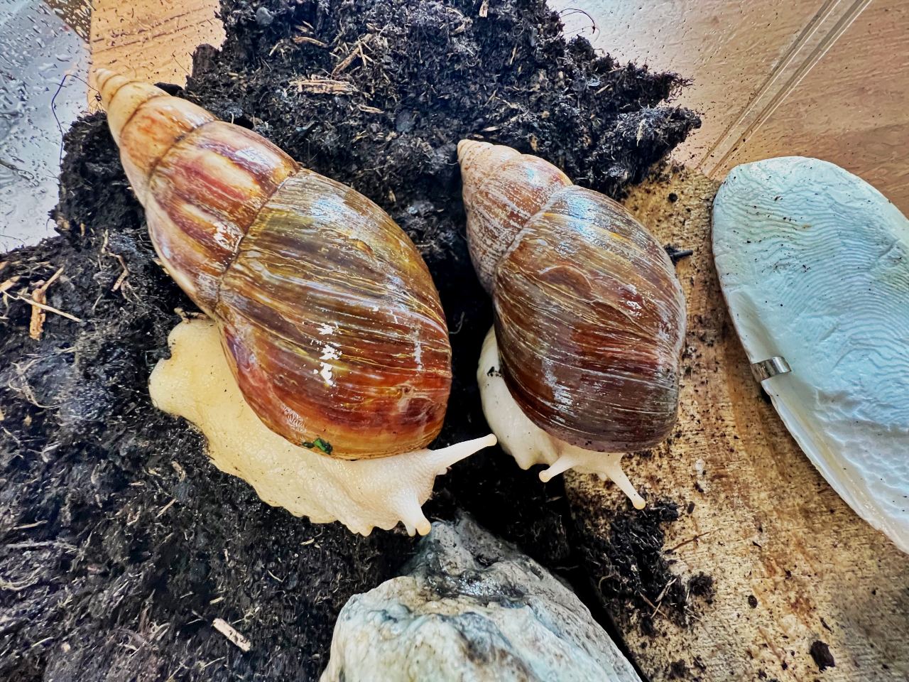 Niedawno do naszej drużyny dołączyły dwa ślimaki afrykańskie Achatina – Robin i Maurycy.