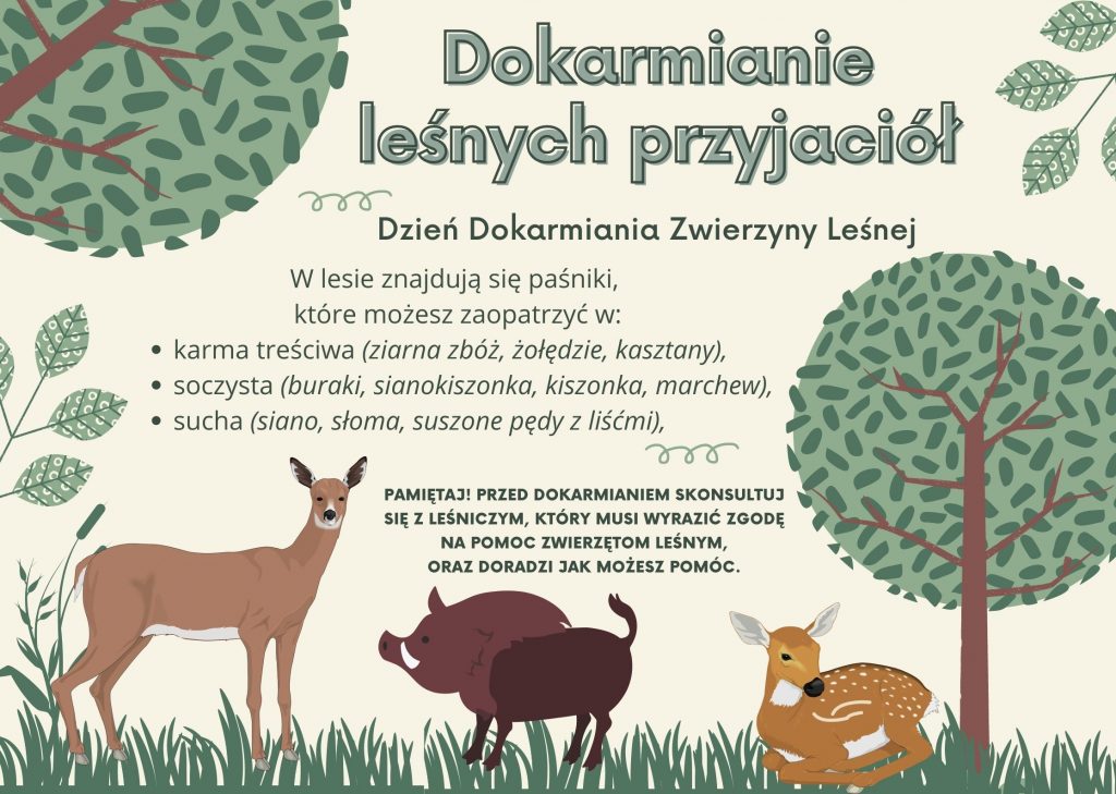 Już w piątek 11 luty 2022, obchodzimy Dzień Dokarmiania Zwierzyny Leśnej. Jak wiemy zima jest trudnym okresem dla zwierząt leśnych, ponieważ mają one ograniczony dostęp do pożywienia i wody. Warto jednak wspomnieć, że karmy nie należy podawać przez cały rok, warunki w inne pory roku są w stanie samodzielnie wyżywić naszych leśnych przyjaciół.