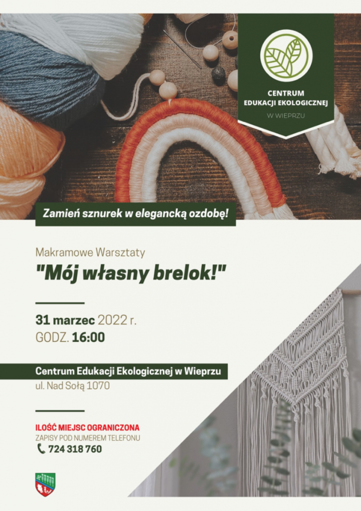 Serdecznie zapraszamy na drugie już z cyklu warsztaty makramy. Tym razem będziemy wyplatać breloki. Tagi:MakramyWeronika Razmus