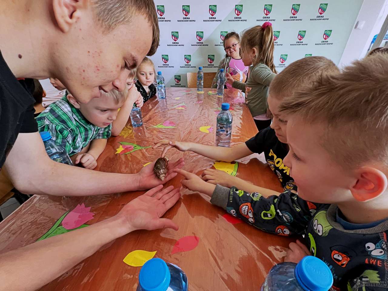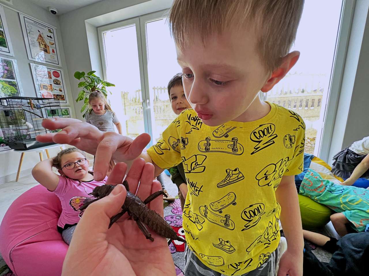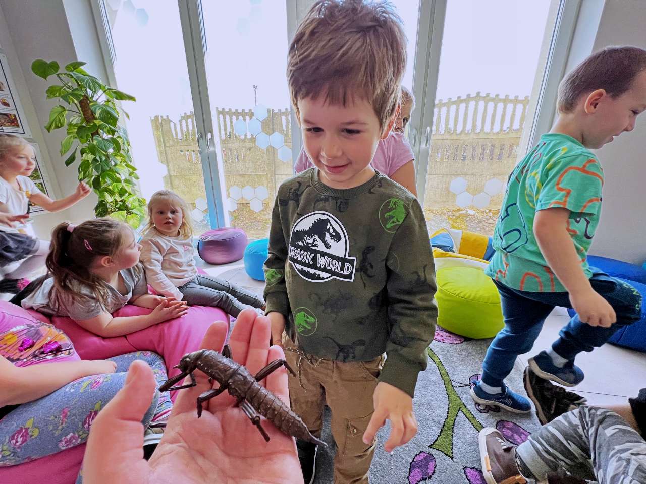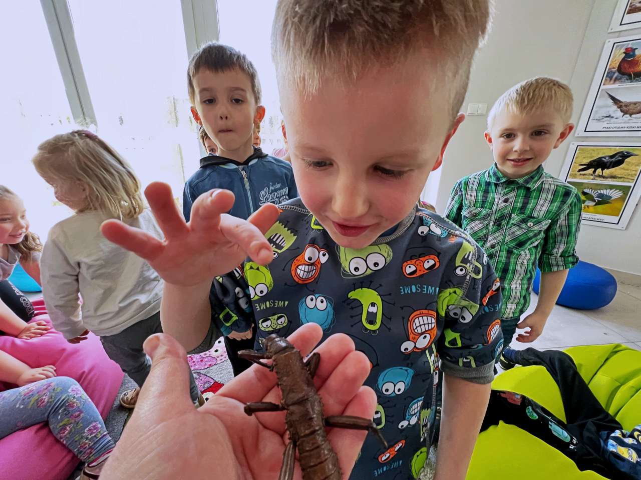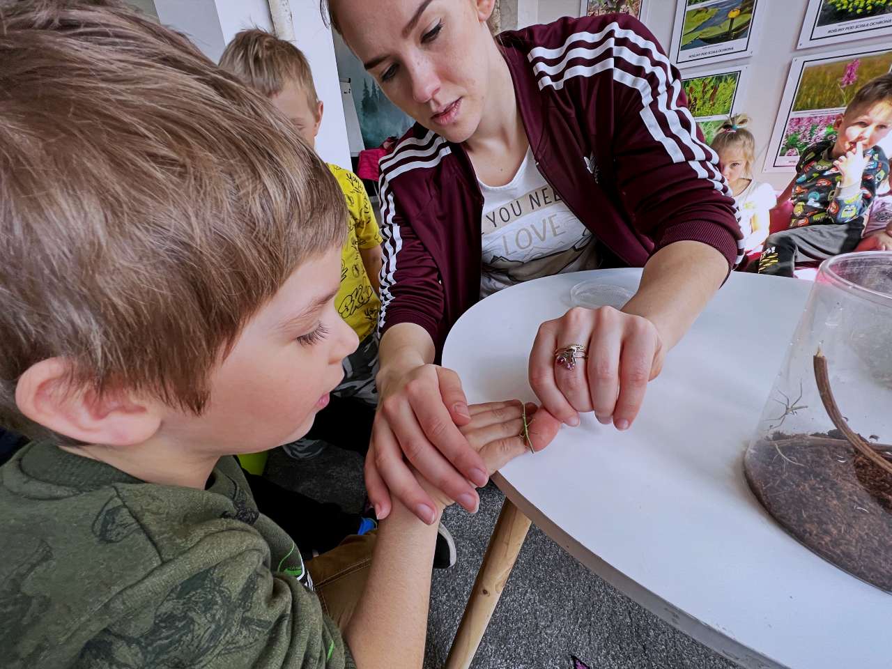 Dzieci miały okazje opowiedzieć o swoich przygodach związanych z mieszkańcami takimi jak ślimaki winniczki, ważki a nawet żmije. Przy okazji maluchy poznały mieszkańców Centrum – modliszkę storczykową, patyczaki, świerszcze bananowe oraz ślimaki Achatina. Wielkim powodzeniem cieszyły się po raz kolejny Kawie, czyli świnki morskie. Dotarły do nas dwie małe świnki: Hania i Dżodżo.