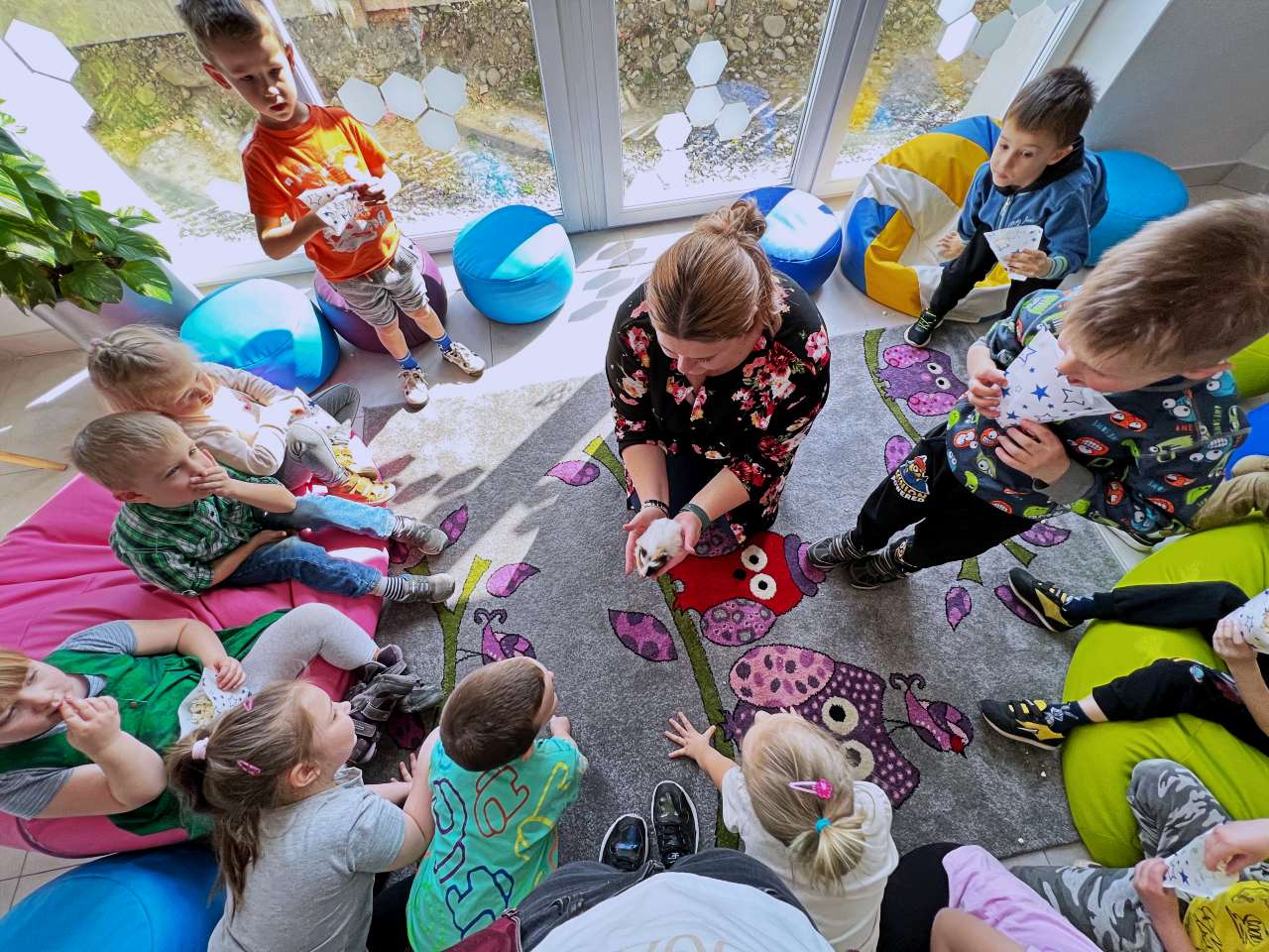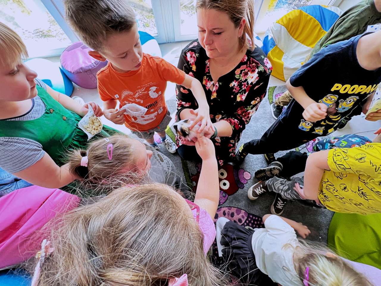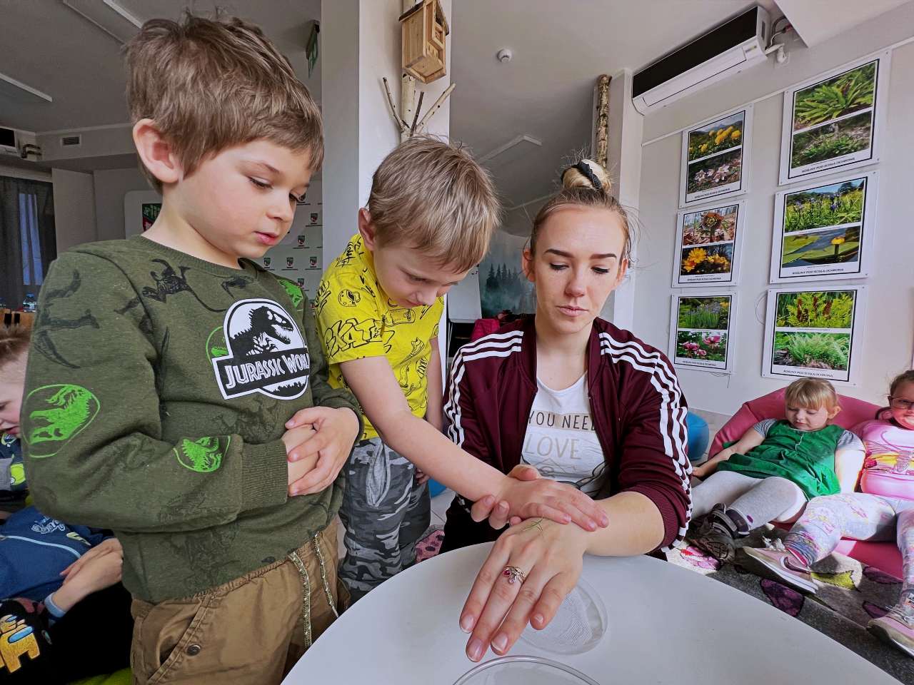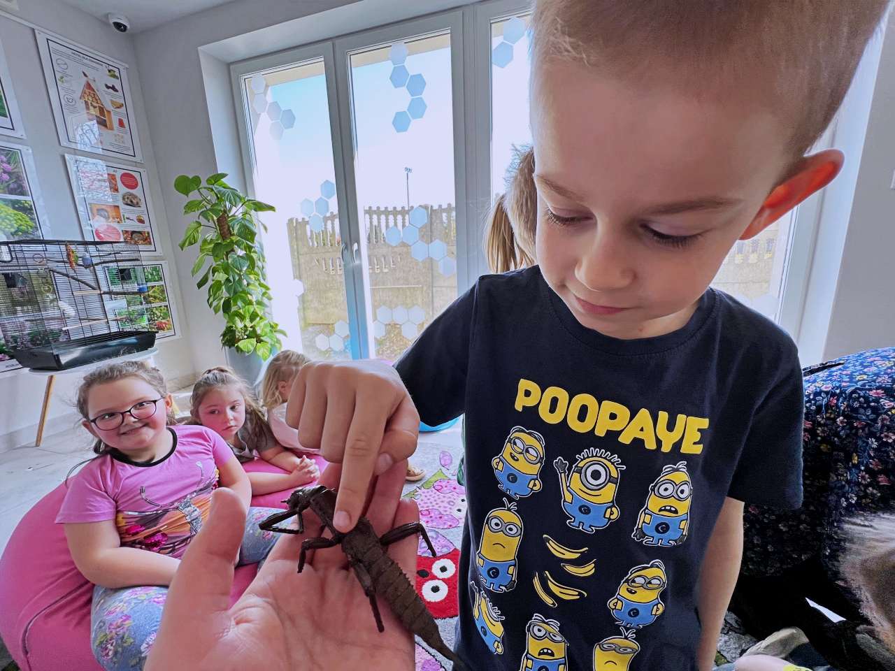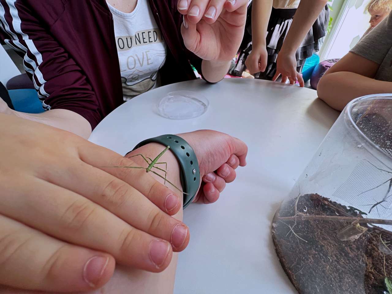 Dzieci miały okazje opowiedzieć o swoich przygodach związanych z mieszkańcami takimi jak ślimaki winniczki, ważki a nawet żmije. Przy okazji maluchy poznały mieszkańców Centrum – modliszkę storczykową, patyczaki, świerszcze bananowe oraz ślimaki Achatina. Wielkim powodzeniem cieszyły się po raz kolejny Kawie, czyli świnki morskie. Dotarły do nas dwie małe świnki: Hania i Dżodżo.